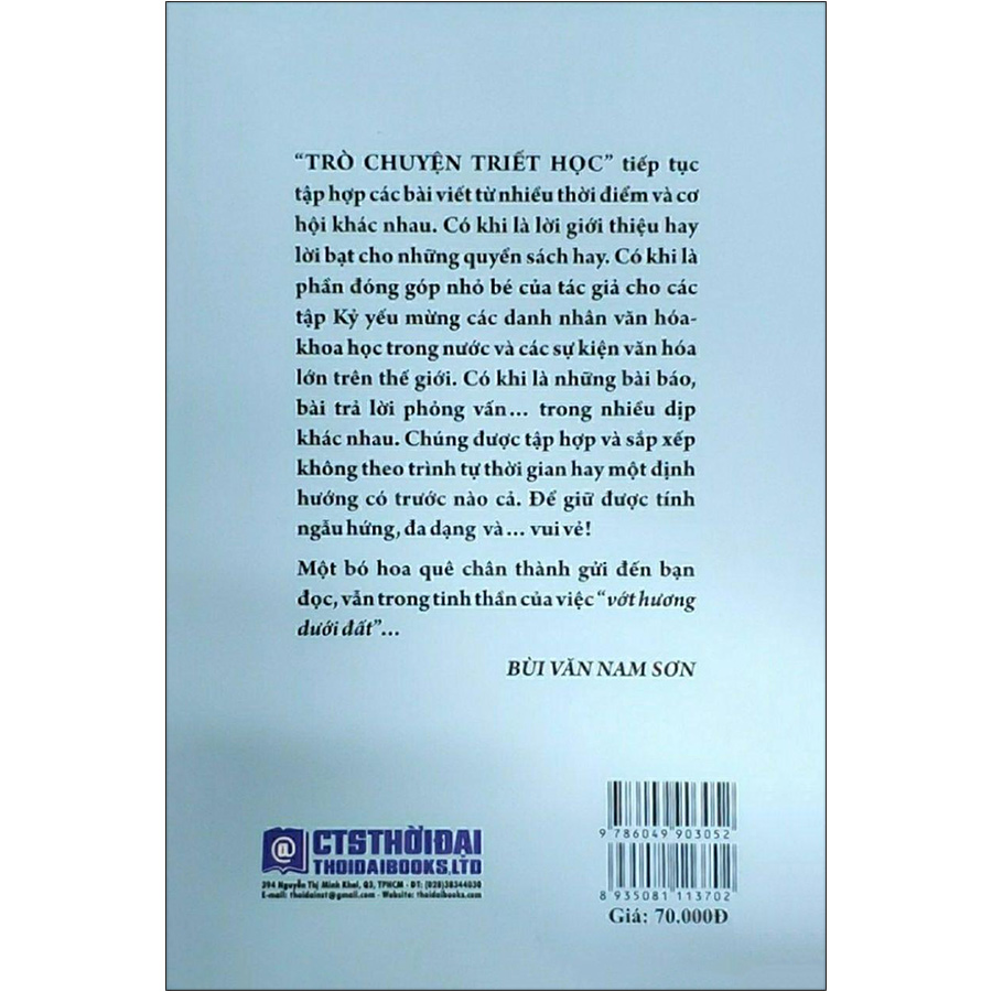 Trò Chuyện Triết Học là tập hợp 92 bài viết của nhà nghiên cứu triết học Bùi Văn Nam Sơn, đăng trên báo Sài Gòn Tiếp Thị gần 2 năm (25.5.2010 – 16.4.2012).