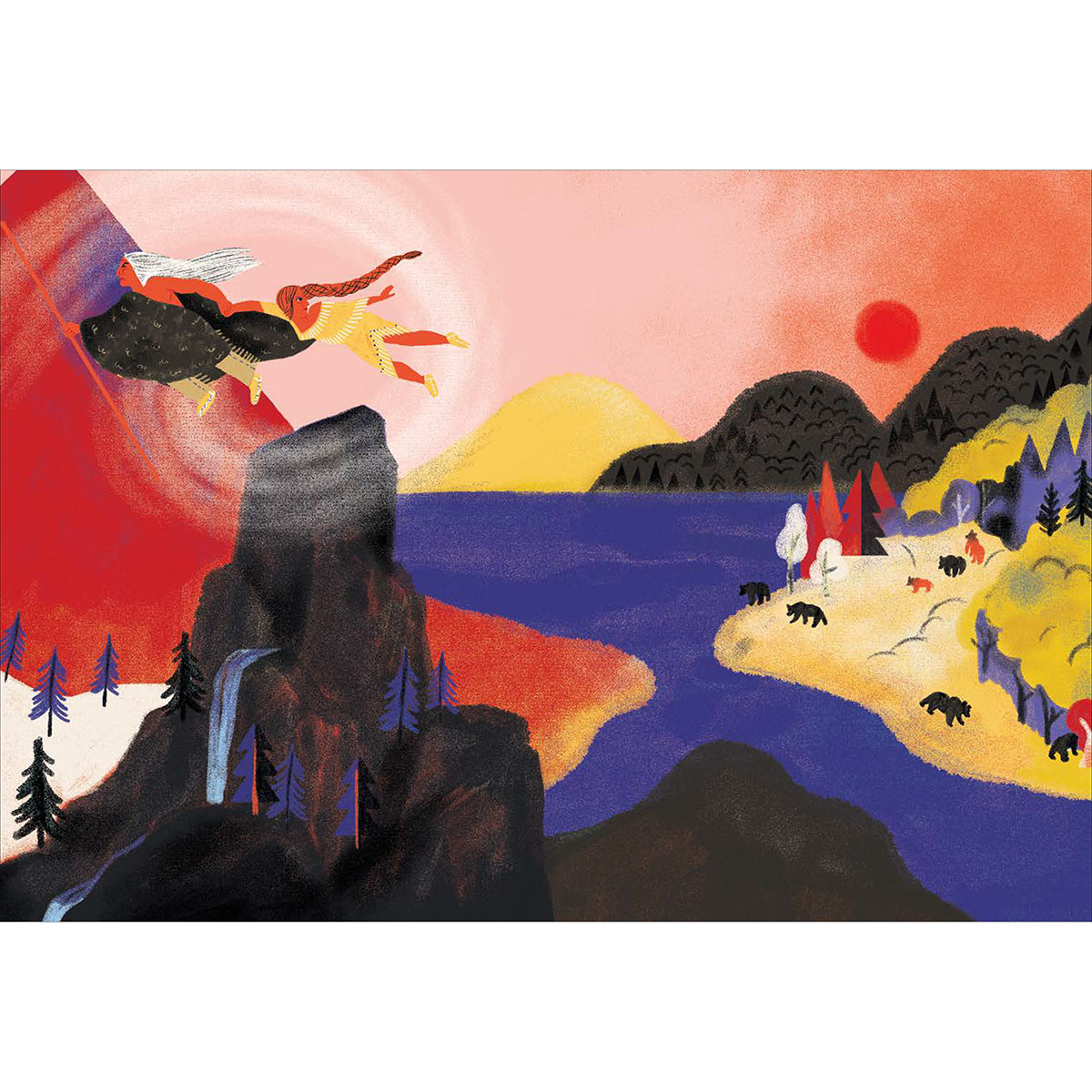 “Trong đêm đông đen quánh, con trăng đỏ rực treo cao bên trên cánh rừng, từng bóng hình lặng lẽ ngồi xuống quây quần quanh đống lửa. Ai cũng tưởng chúng đã ngủ quên trong hang sâu, thế nhưng bầy gấu từ nơi xa rất xa đã tới. Chúng đã vượt qua một chặng đường dài, không quản giá lạnh, hiểm nguy và con người…” - Truyện Gấu Bốn Phương