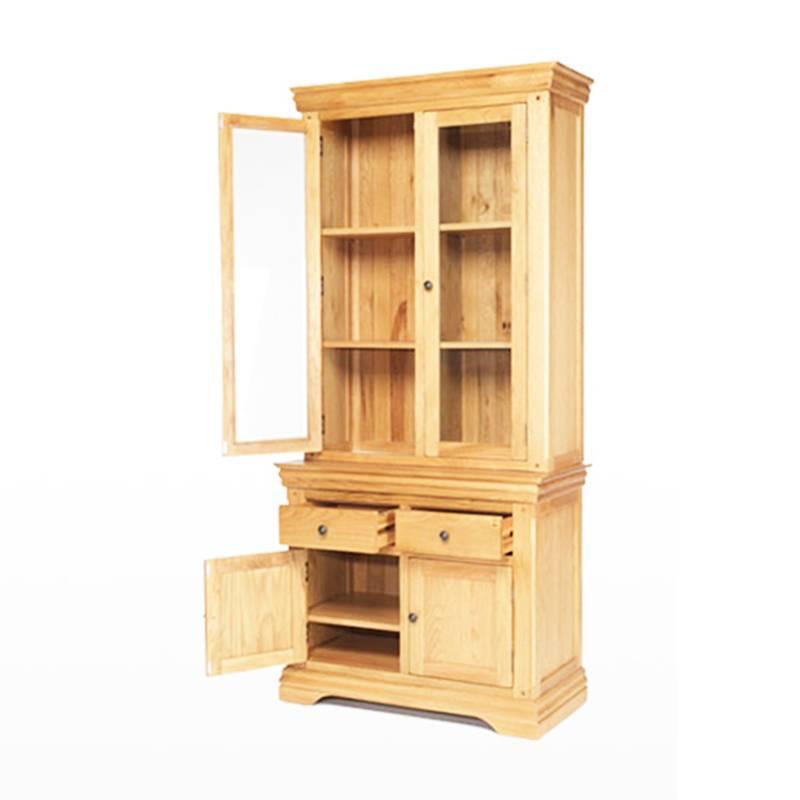 Chiếc tủ chén này gợi nhớ gian bếp thời xa xưa của kiến trúc nhà ba gian, nhưng lại rất hợp với cuộc sống hiện đại. Được chế tác tinh xảo bởi những người thợ thủ công lành nghề, chiếc tủ chén mang hơi phong cách Pháp cổ điển sẽ giúp mọi thứ trong phòng ăn hoặc gian bếp ngăn nắp, gọn gàng. Đằng sau hai cánh cửa kính là 3 tầng kệ rộng rãi, để được rất nhiều bát đĩa, rượu trưng bày hoặc những đồ trang trí khác. Hai hộc cánh mở và 2 ngăn kéo sẽ tạo thêm nhiều không gian lưu trữ cho gia đình.