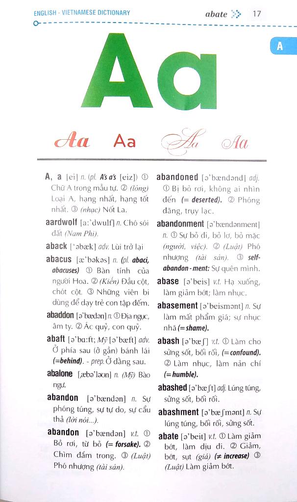 Nhằm đáp ứng nhu cầu học tiếng anh đa dạng của độc giả , chúng tôi đã biên soạn bộ từ điển Anh - Việt để phục vụ cho người học tiếng anh thuộc mọi