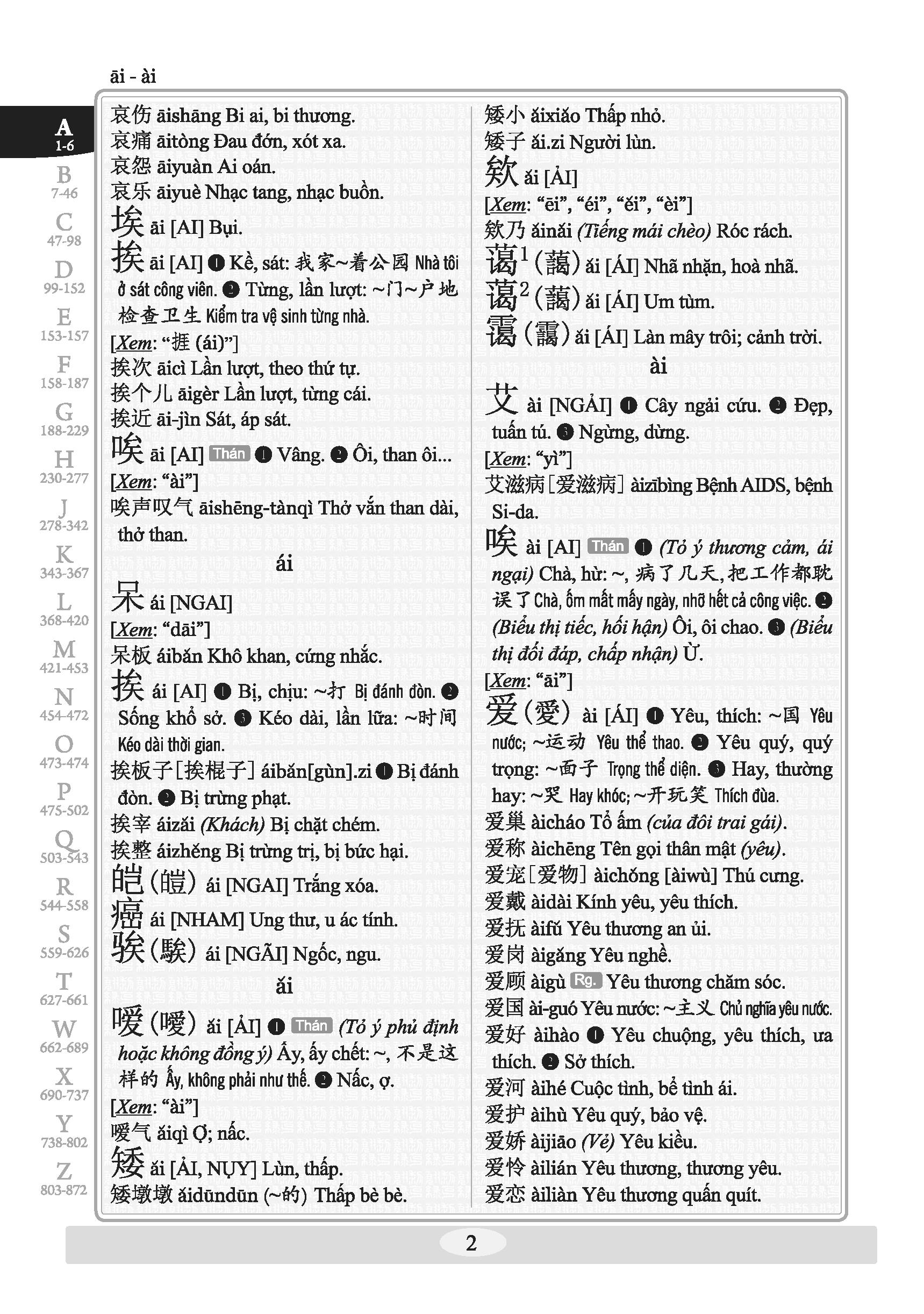 Khổ 10x16, bìa cứng, 1424 trang, in giấy trắng đẹp Nhằm đáp ứng nhu cầu tra cứu từ Việt sang Hán của người học tiếng Hán, nhất là để phục vụ cho đối tượng học