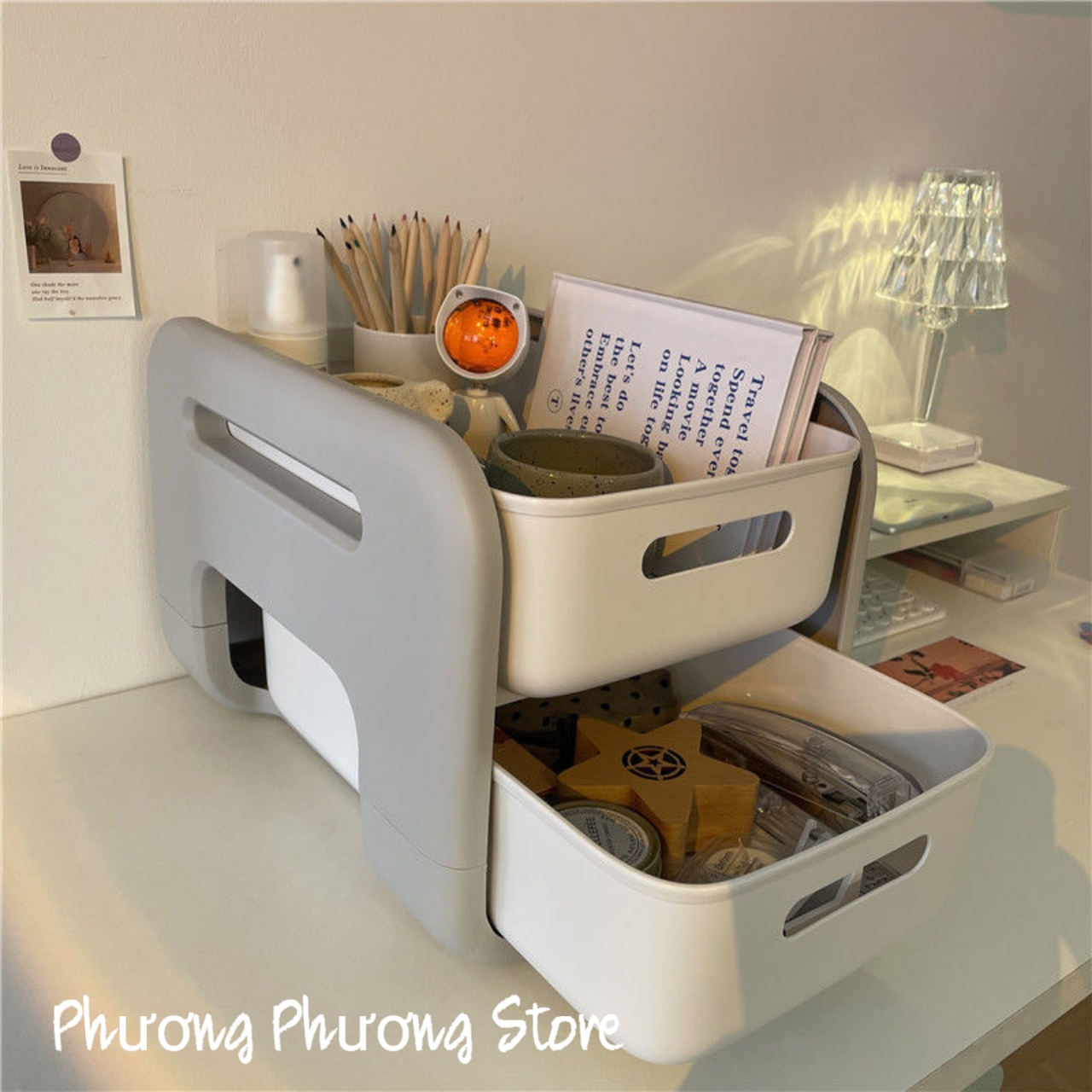 thân kệ được lắp ráp chắc chắn, 2 ngăn kéo trượt dễ dàng sử dụng thuận tiện cho việc chứa và lấy các món đồ