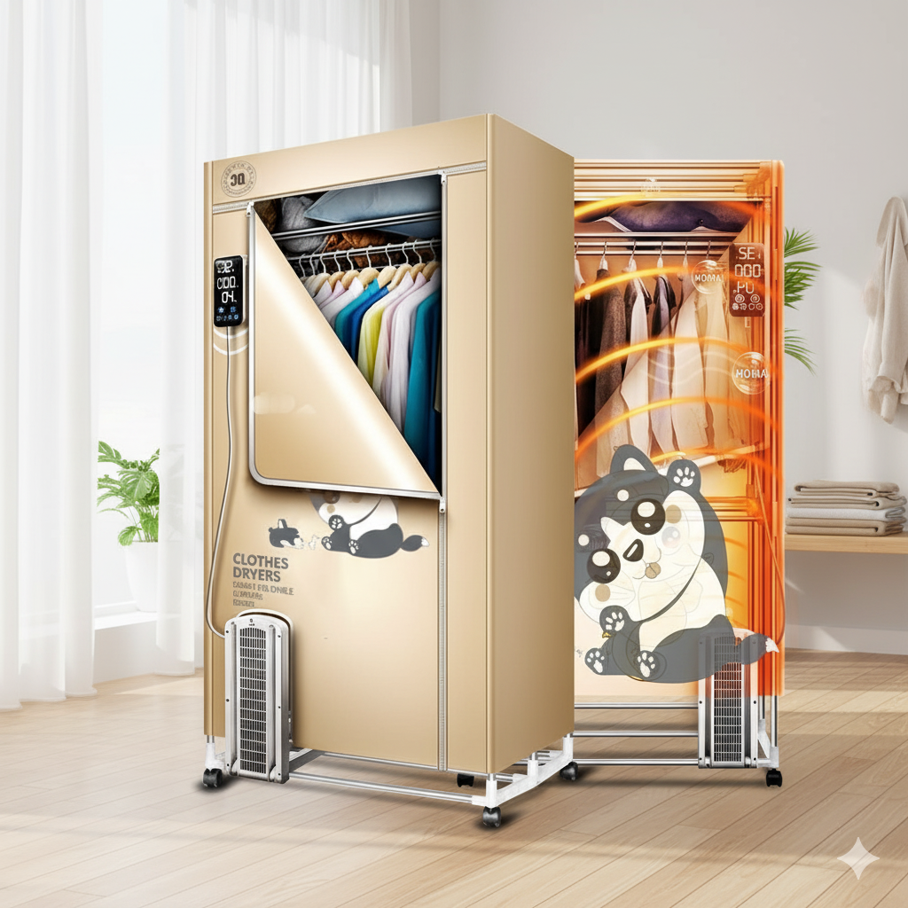 ĐẶC ĐIỂM NỔI BẬT: - Công dụng: làm khô nhanh quần áo, loại bỏ mùi hôi khó chịu, bụi bẩn trên quần áo. - Sử dụng bộ phát điện ổn định PTC, tiết kiệm điện. -