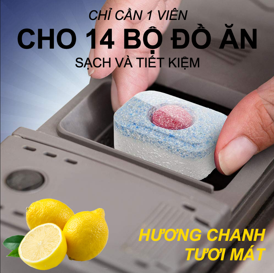 Viên rửa bát mạnh mẽ với khả năng hòa tan dầu mỡ chống lại hầu hết các vết dầu mỡ cứng đầu Là dạng viên rửa bát tổng hợp cả muối và nước làm bóng