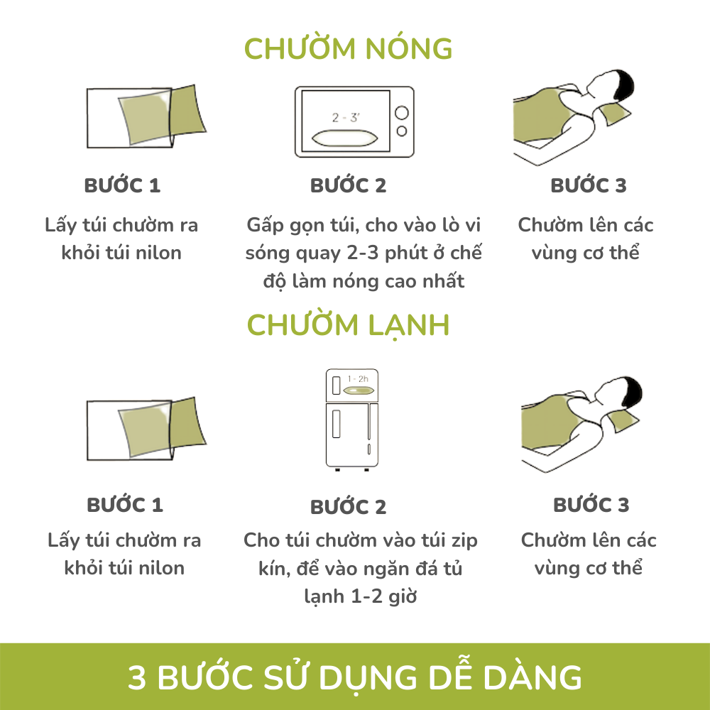 TÚI CHƯỜM NÓNG LẠNH - GIẢM ĐAU, HẠ SỐT Khi bị bong gân, sai khớp, bầm dập cơ,…bạn có thể dùng túi chườm lạnh. Liệu pháp này giúp giảm đau và phù nề do