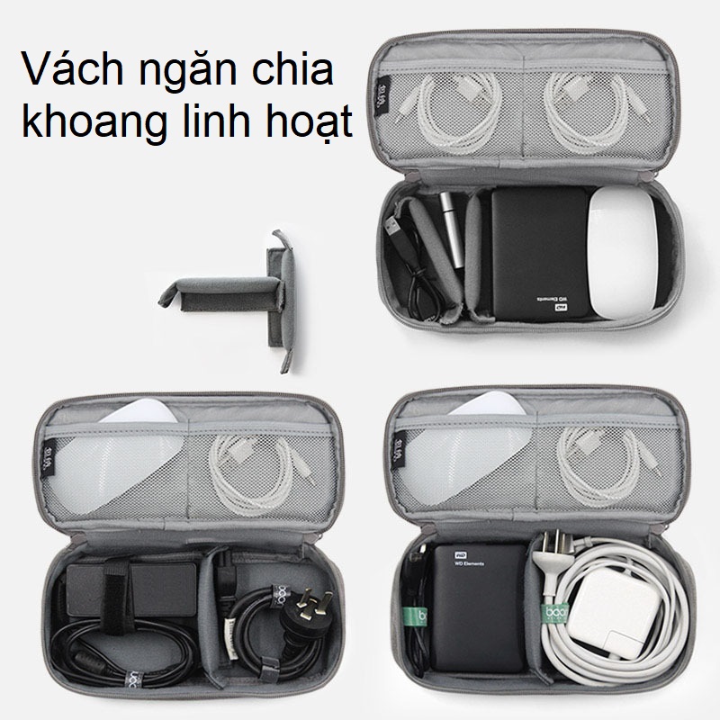 Những ai sử dụng nhiều phụ kiện công nghệ, như sạc dự phòng, sạc điện thoại, dây sạc, sạc Mac book chắc chắn sẽ rất yêu thích túi này. Vì em nó có thể đựng