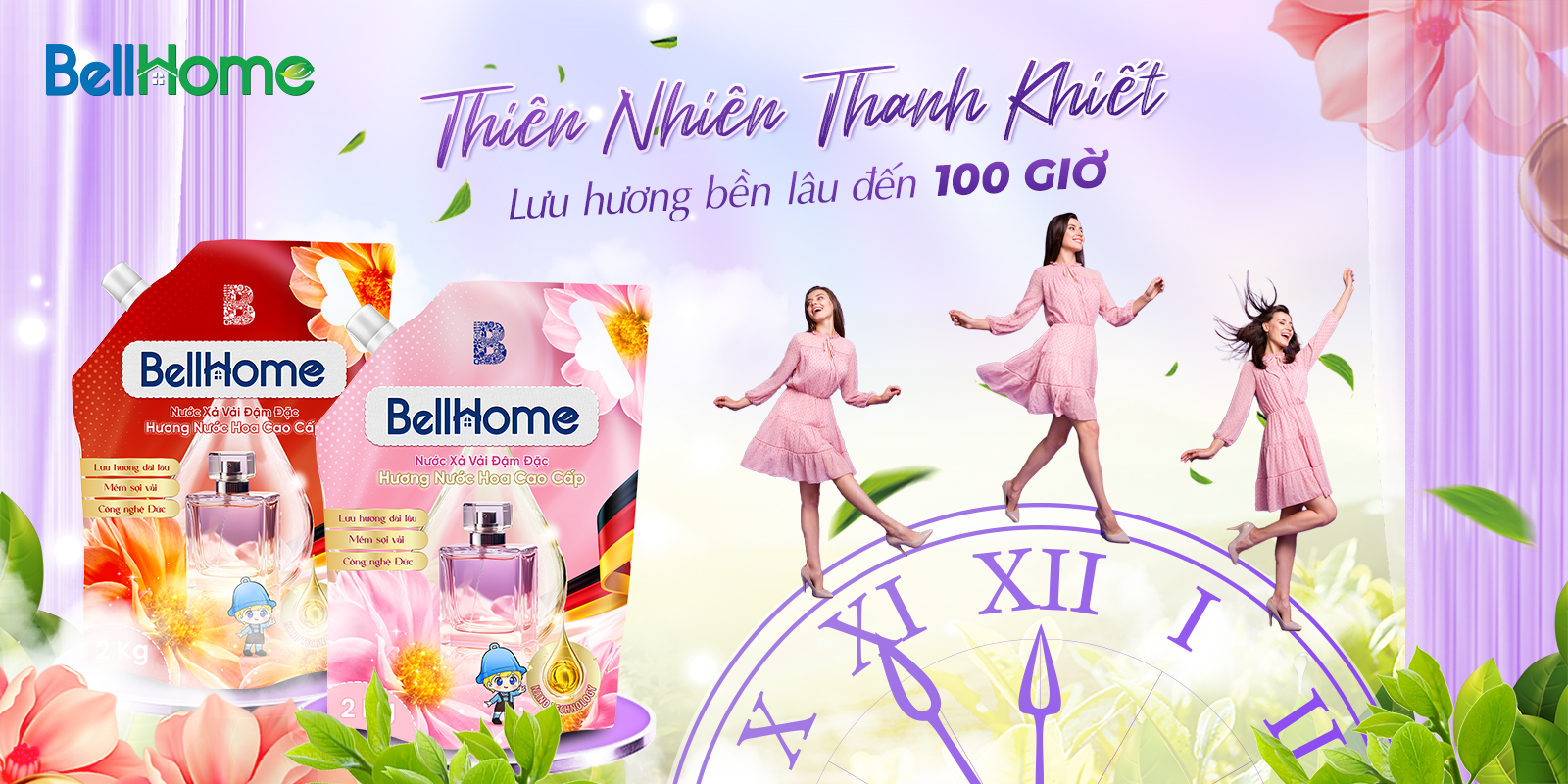 • Quần áo được ủi/là nhanh chóng và dễ dàng: Bằng cách sử dụng nước xả vải Bell Home, từng thớ vải và sợi vải sẽ trở nên mềm mại hơn. Sau khi phơi khô quần áo, bạn sẽ cảm nhận được sự mịn màng và thoải mái khi chạm vào. Ngay cả việc là ủi cũng trở nên dễ dàng hơn, quần áo sẽ được là thẳng mà không gây ra những nếp nhăn như khi bạn giặt với bột giặt thông thường. An toàn cho làn da nhạy cảm Nếu sử dụng những sản phẩm nước xả chứa nhiều hóa chất thì là da nhạy cảm thường dễ bị kích ứng, gây ra tình trạng mẩn đỏ và ngứa. Bell Home ứng dụng công nghệ sinh học hàng đầu hiện nay với thành phần có chiết xuất tự nhiên, đảm bảo an toàn và lành tính. Nước xả vải đậm đặc Bell Home không chỉ có hương thơm lâu phai mà còn an toàn cho da, không gây kích ứng, phù hợp để bạn sử dụng cho cả gia đình.  Tiết kiệm thời gian giặt đồ Nếu bạn đang trong tình trạng bận rộn và muốn tiết kiệm thời gian khi giặt giũ, vậy nước xả vải Bell Home chính là lựa chọn hoàn hảo nhất. Sản phẩm này không chỉ giúp duy trì cấu trúc của vải để quần áo luôn trông phẳng phiu sau mỗi lần giặt mà còn có khả năng loại bỏ bọt xà phòng ngay trong lúc xả. Nhờ điều này, quần áo của bạn và gia đình sẽ không chỉ sạch sẽ và thơm tho mà còn không tốn quá nhiều thời gian chăm sóc. Giúp quần áo mau khô hơn Nghe có vẻ không liên quan nhưng sử dụng nước xả vải đậm đặc Bell Home sẽ giúp giảm đến 12% lượng nước còn lại trong quần áo sau mỗi vòng giặt, từ đó rút ngắn thời gian cần thiết để phơi khô. Điều này đồng nghĩa với việc quần áo của bạn và cả gia đình sẽ mau khô và thoáng mát hơn.