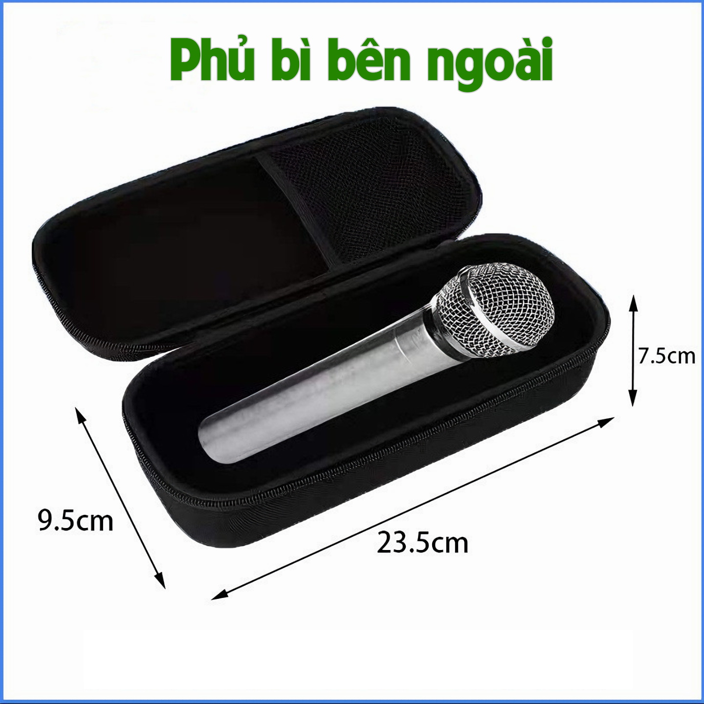 - Kích thước phủ bì: 23.5cm x 9.5cm x 7.5cm; Lọt lòng tối đa 22cm, vui lòng so với chiều dài micro không vượt quá 22cm. Các loại micro dài hơn sẽ không để vừa.