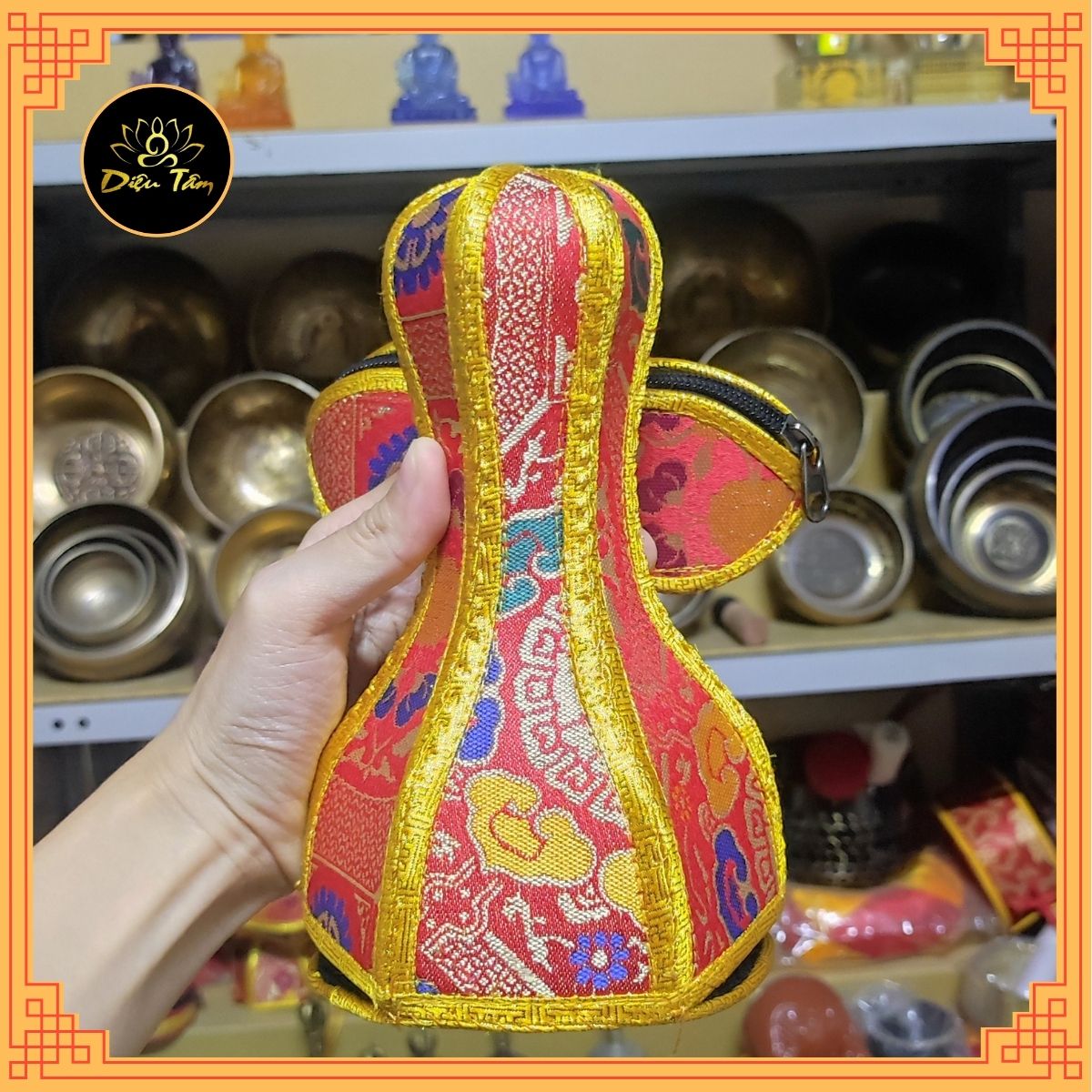 ✨Túi vải gấm hộp đựng chuông chày kim cang Nepal mật tông tây tạng đồ thờ cúng bộ vỏ bao đựng chuông chùy - áo linh chử