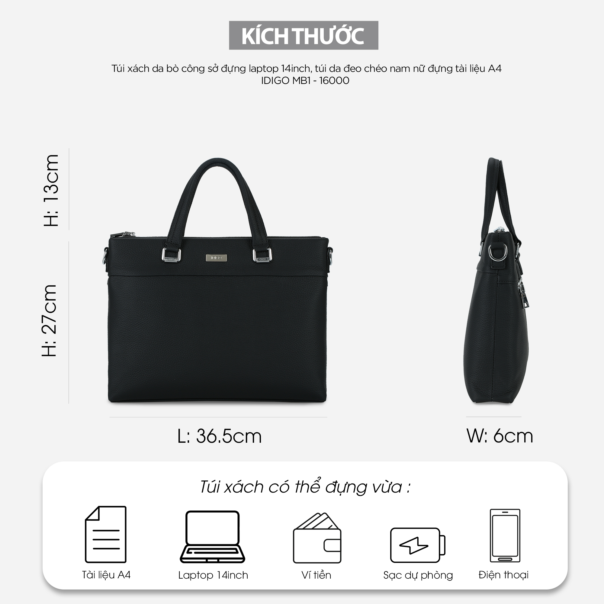 ✨Túi xách công sở nam nữ đựng laptop 14 inch IDIGO MB1 - 16000, túi đựng tài liệu A4 da thật cao cấp