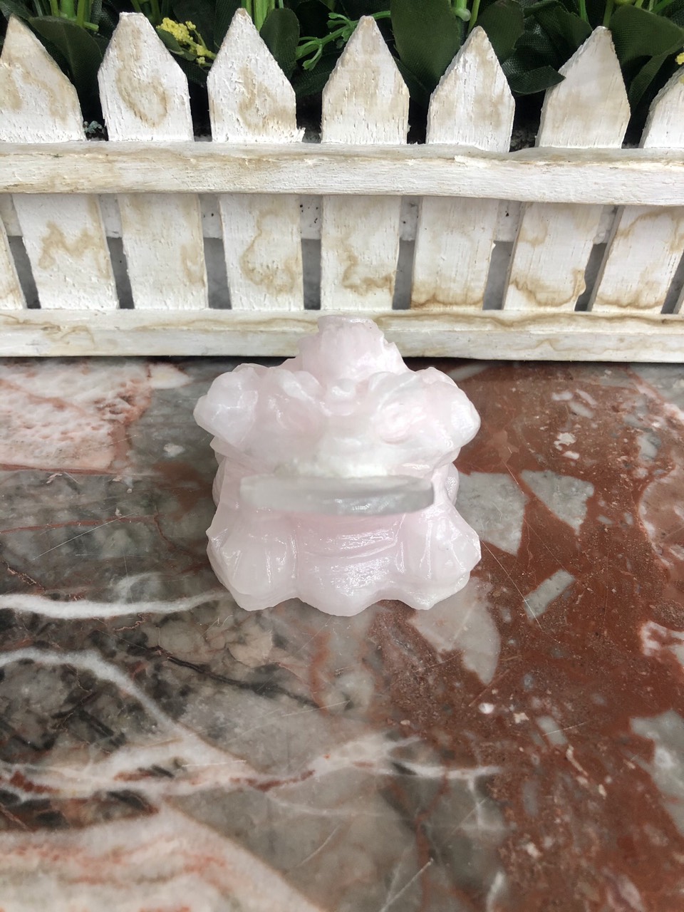 Chất liệu: Đá thạch anh hồng Kích thước: Dài 7 cm x Rộng 6 cm x Cao 5 cm Khối lượng: 290g Thiềm Thừ được người xưa gọi là Cóc tài lộc, Cóc ba chân