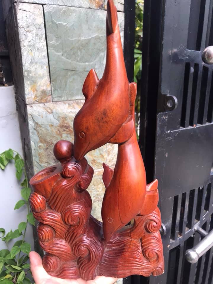Tượng Gỗ Ống Đựng Bút Gỗ Gõ Chạm Hình 2 Con Cá Heo May Mắn TRANG TRÍ VÀ ĐỂ BÚT XINH LẮM cao 36cm x ngang 18cm x sâu 7cm đẹp lạ CÁ HEO BIỂU