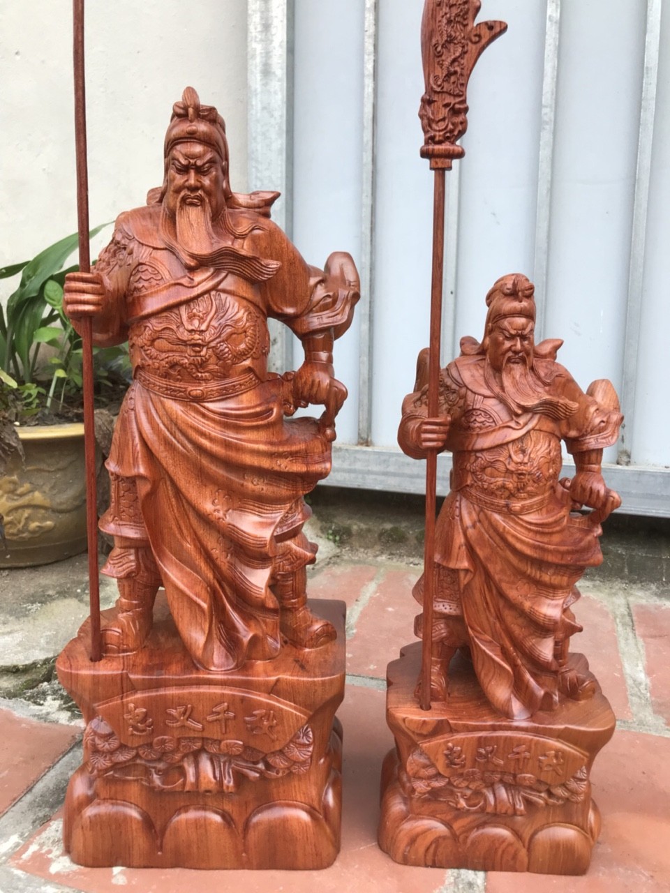 _ Cặp tượng khổng minh và quan công được làm bằng chất liệu gỗ huyết long liền khối tự nhiên 100% _ Kích thước khổng minh 20×8×6cm _ Kích thước quan công 20×8×6cm _ Cặp