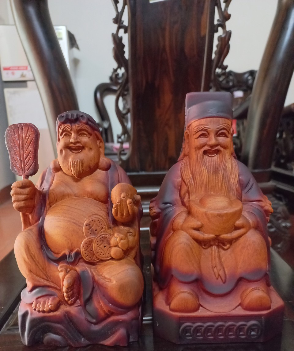 Cặp thần tài thổ địa cao 15 20 25 30cm gỗ hương