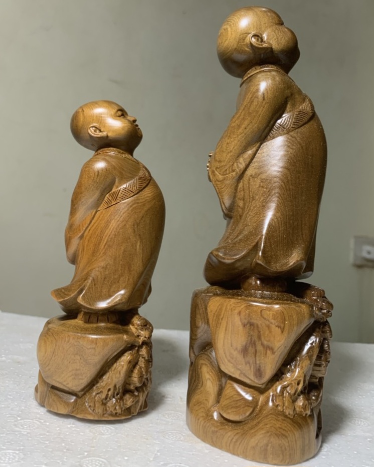 Cặp tượng đạt ma sư tổ và tượng tố công được làm bằng chất liệu gỗ hương đá tự nhiên 100% _ Kích thước 40×12×11cm _ Cặp tượng tố công và đạt ma được làm
