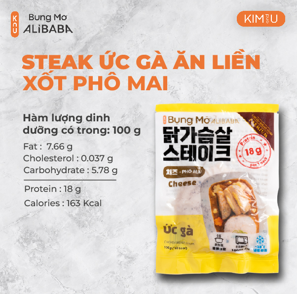 Ức gà Steak Sốt Phô Mai là sự kết hợp giữa hương vị thanh ngọt tự nhiên của thịt gà và vị béo ngậy tan chảy từ phô mai thơm ngon. Cắt một miếng gà sốt phô mai thơm béo, thưởng thức bữa ăn thú vị và tràn ngập niềm vui. Chỉ cần 2 phút mở gói và hâm nóng ức gà đã được cắt lát và nêm nếm sẵn là bạn đã thưởng thức bữa ăn lành ngon, tiện lợi. Thịt gà vẫn tươi nhờ giữ được độ mềm thơm đậm vị trong từng thớ thịt vẹn nguyên dưỡng chất.