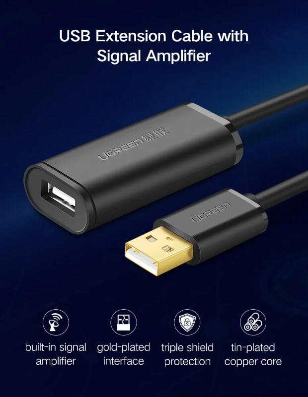 Review Cáp nối dài usb Ugreen 10321 10m chuẩn 2.0 chính hãng có chíp khuếch đại