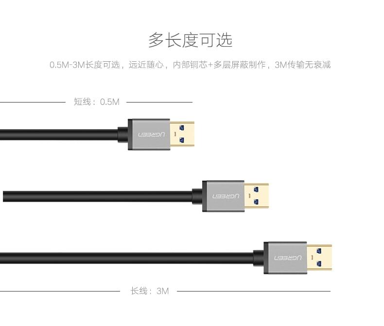 Ugreen 10309 1m usb2.0 a male to a male cable us102 1. Length : 1M 2. Color : Black 3. USB Version : 2.0 4. Charger + Data Transfer Link Cable USB 2.0 5. 100