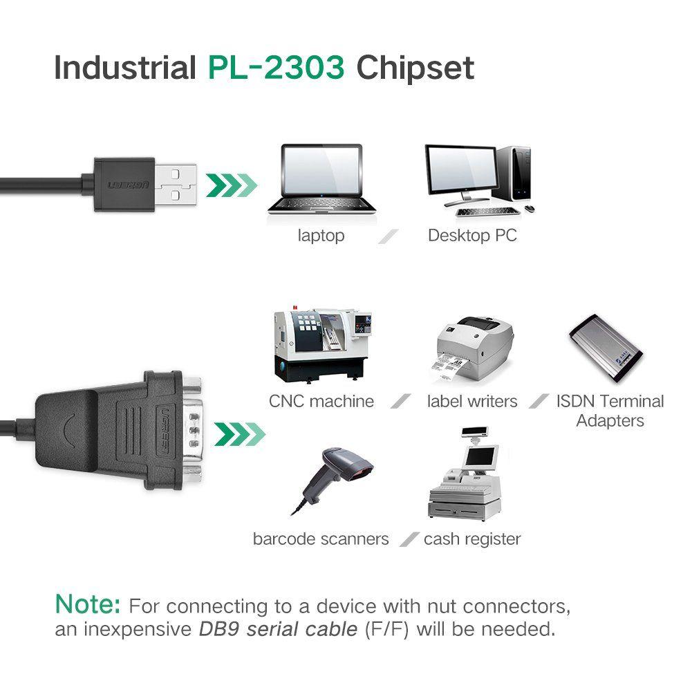 Ugreen 20201 1.5m usb to db9 rs 232 cable femalechipset pl2303 gray cr104 1. Color:Black 2. Length: 1.5m 3. USB - RS232 Cổng Âm 4. 100g 5. 20 x 20 x 5 cm