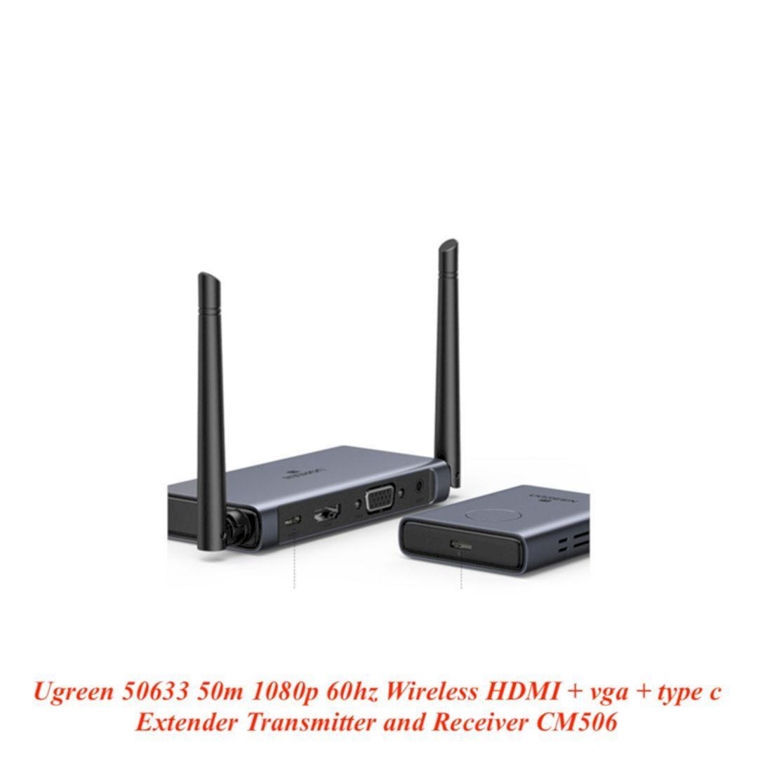 ✨Ugreen UG50633US505TK 50m 1080p 60hz Wireless HDMI + VGA + 3.5mm Audio Extender Transmitter and Receiver with type c power port - HÀNG CHÍNH HÃNG