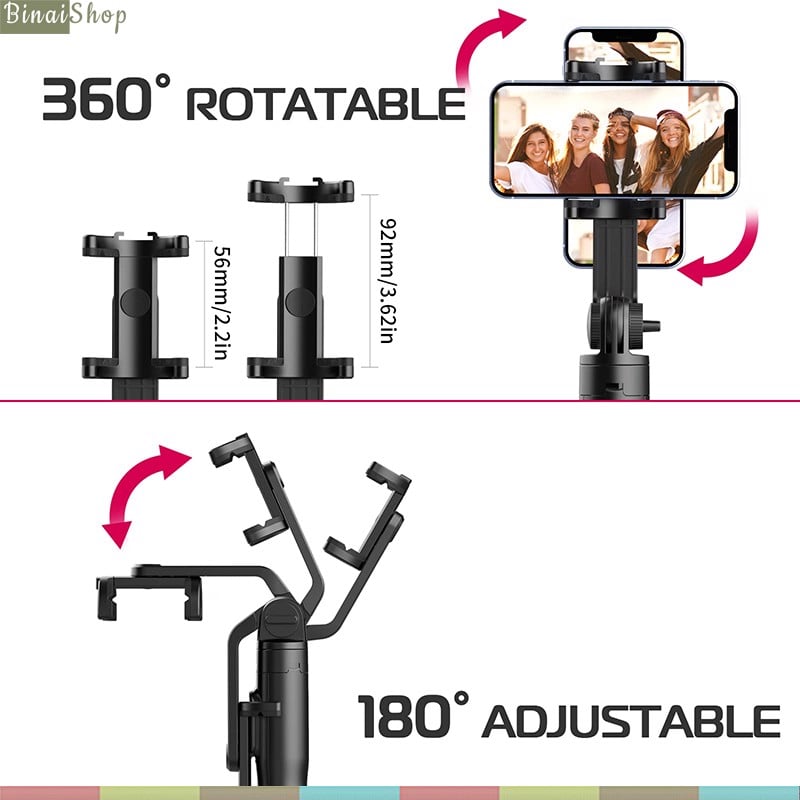 Mua tại TiktokTÍNH NĂNG NỔI BẬT - Khả năng chống rung điện tử cực tốt - Độ dài tối đa lên đến 86cm tha hồ selfie - Khóa ngang tự động 180 độ, chuyển đổi màn hình