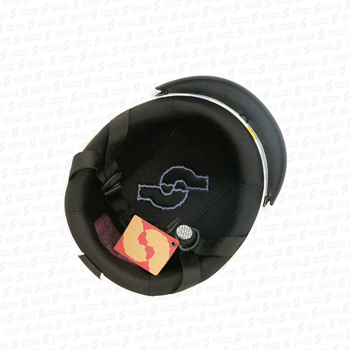 • Phần logo NÓN SƠN được gắn trên vỏ nón bảo hiểm Nón Sơn được làm từ da thật.