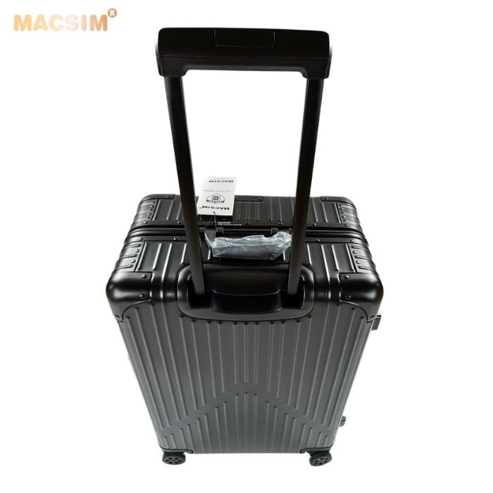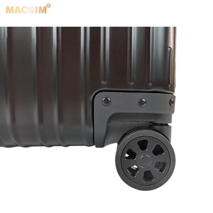 Toàn bộ thân vỏ vali Macsim làm bằng hợp kim nhôm A6063 làm cho vali rất nhẹ, độ đàn hồi cao, chống ăn mòn, chịu được tải trọng lớn.