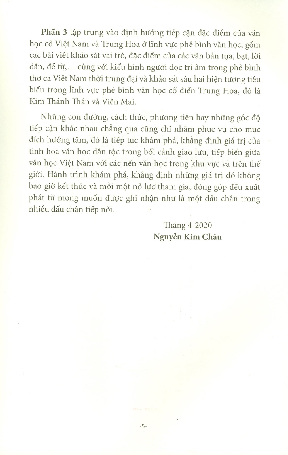 Mua tại TiktokNhững con đường, cách thức, phương tiện hay những góc độ tiếp cận khác nhau chẳng qua cũng chỉ nhằm phục vụ cho mục đích hướng tâm, đó là tiếp tục khám phá, khẳng định giá trị của tinh hoa văn học dân tộc trong bối cảnh giao lưu, tiếp biến giữa văn học Việt Nam với các nền văn học trong khu vực và trến thế giới. Hành trình khám phá, khẳng định những giá trị đó không bao giờ kết thúc và mỗi một nỗ lực tham gia, đóng góp đều xuất phát từ mong muốn được ghi nhận như là một dấu chân trong nhiều dấu chân tiếp nối. (Trích Lời Nói Đầu)