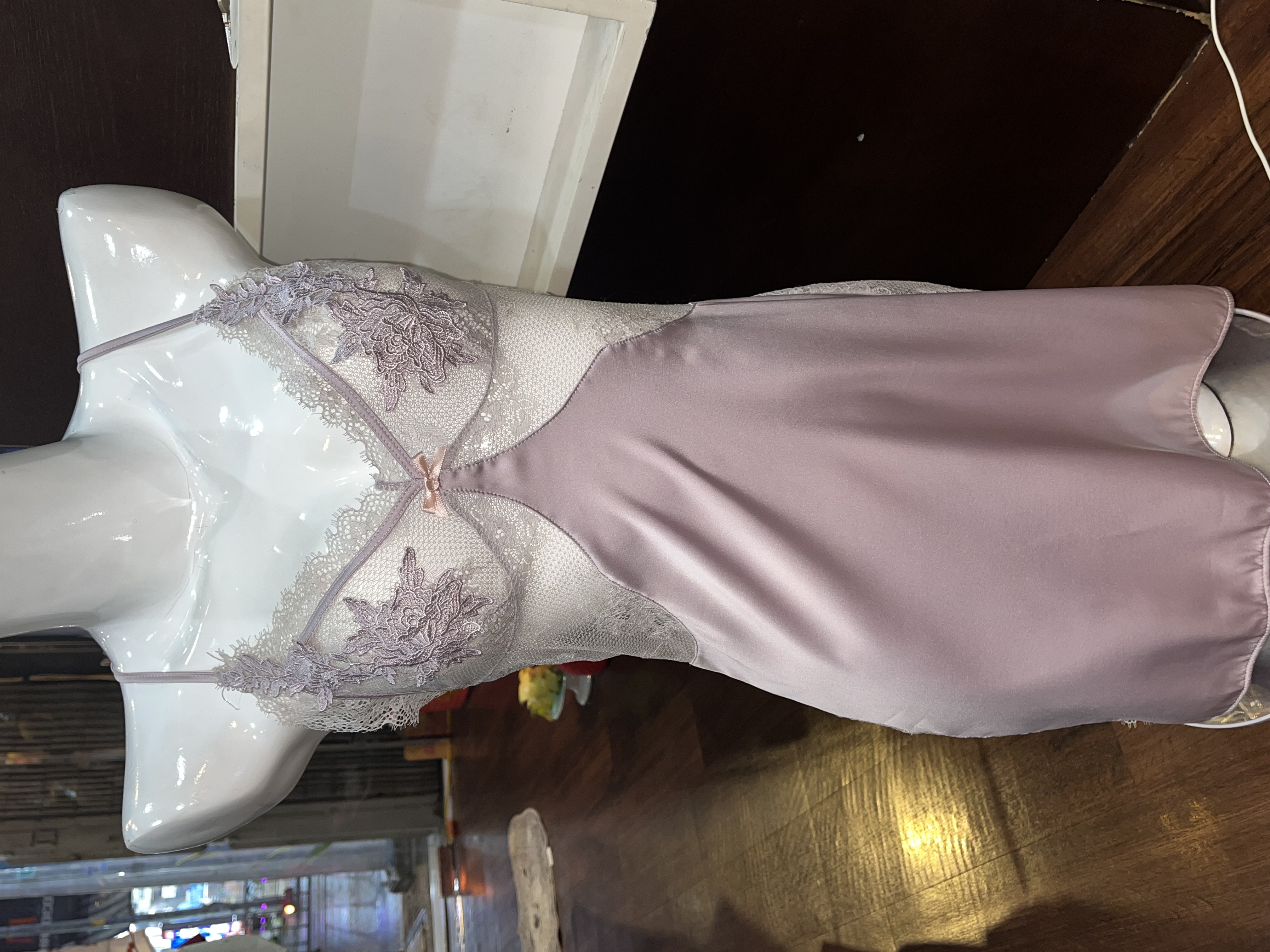 Thương hiệu: Sanny House Tên sản phẩm: Váy ngủ Chất liệu: lụa cao cấp mềm mịn, co giãn, thấm hút tốt Kiểu dáng: gợi cảm, trẻ trung, hiện đại Màu: tím Size: dưới 56kg