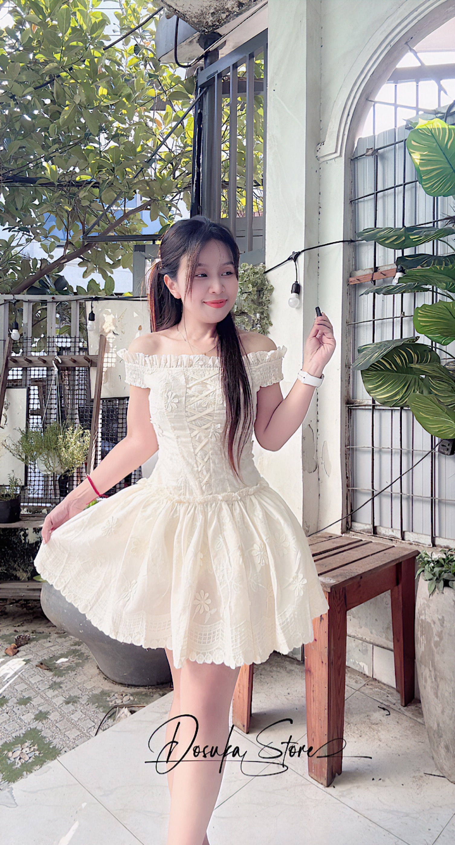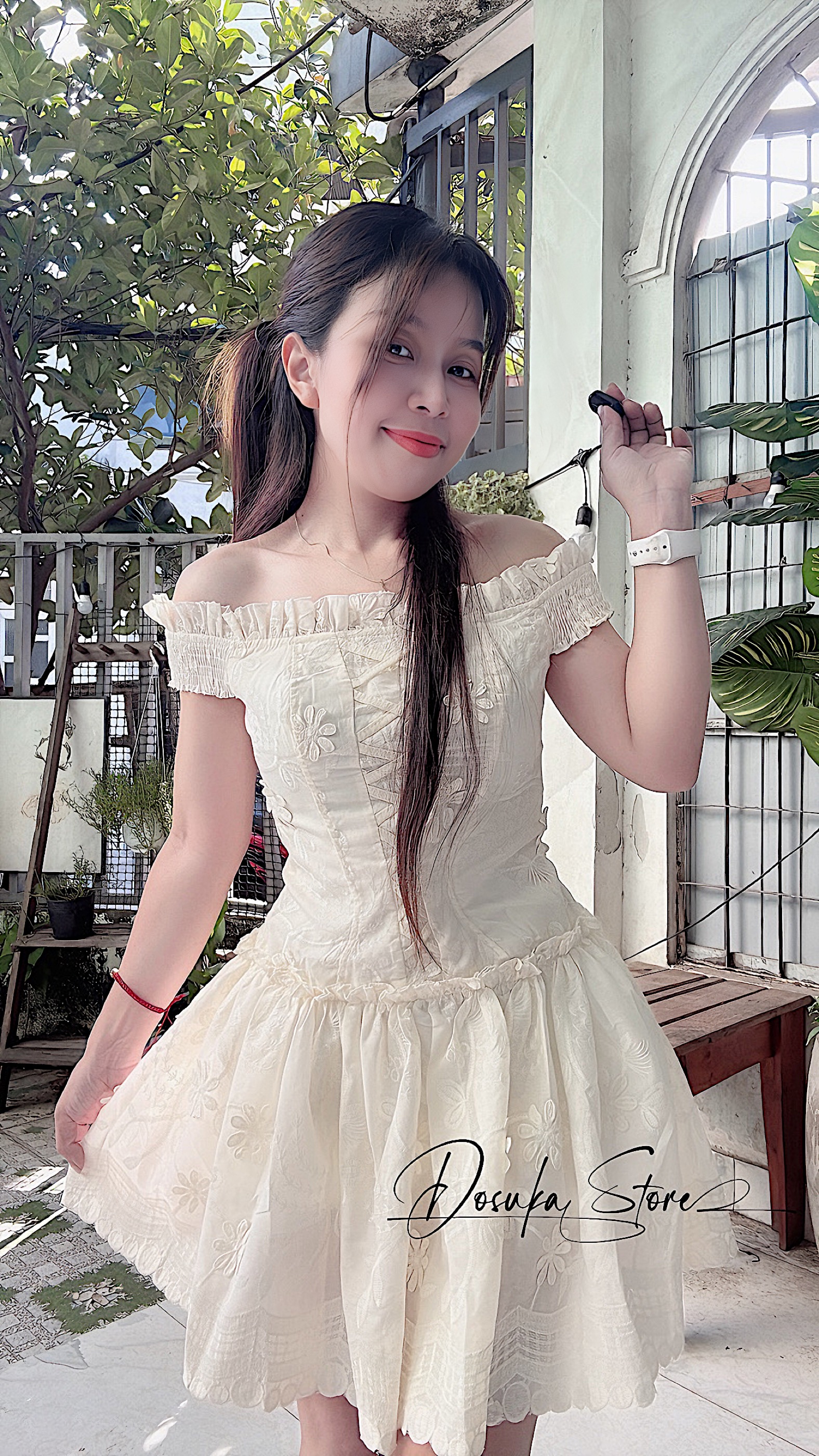 D4980] Váy thiết kế ren cúc bọc tay bồng pha chân tơ dáng dài Shop về 2 size S.M 2 màu trắng và kem Sản phẩm này là tài sản cá nhân được bán bởi