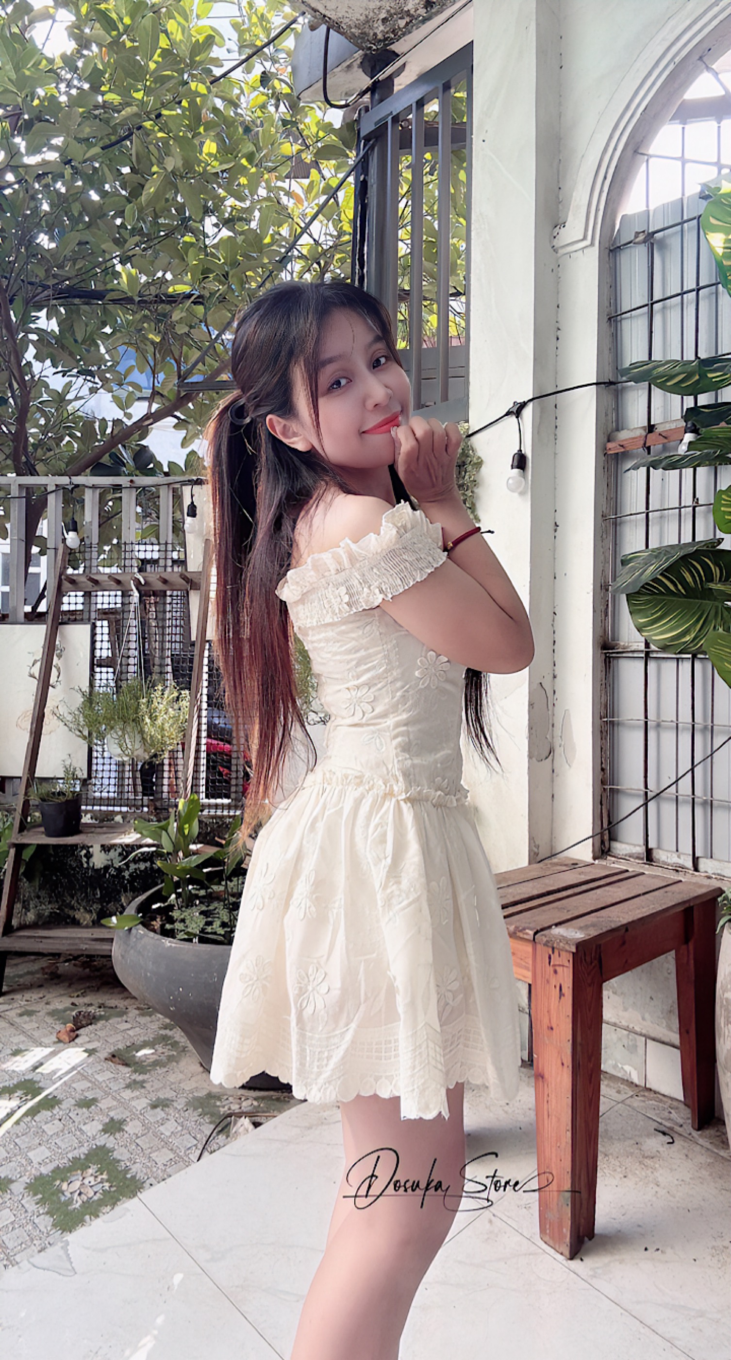 Váy thiết kế thêu hoa bèo ngực phối tay tơ bồng Váy dự tiệc đơn giản bao xinh nổi bật mà ko sợ lấn áp cô dâu đây rồi Shop về sẵn 2 size S