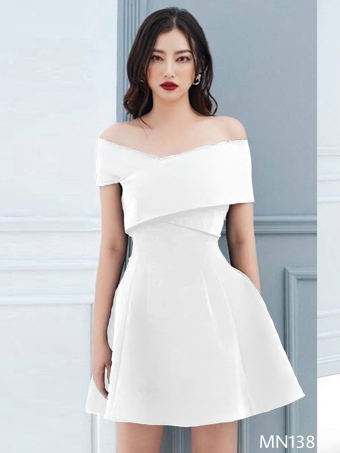 ✨Váy trễ vai MINA thiết kế chéo ngực dáng xoè chất liệu tuyết mưa cao cấp MN138