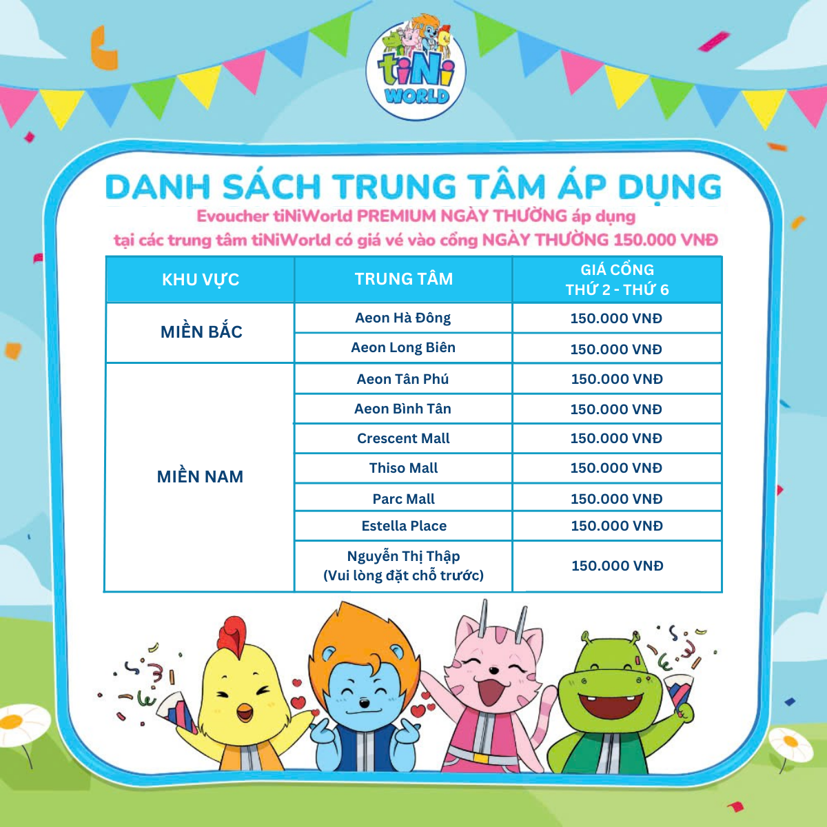 ✨Vé cổng điện tử tiNiWorld PREMIUM NGÀY THƯỜNG áp dụng tại các trung tâm tiNiWorld có giá vé vào cổng 150.000 VNĐ