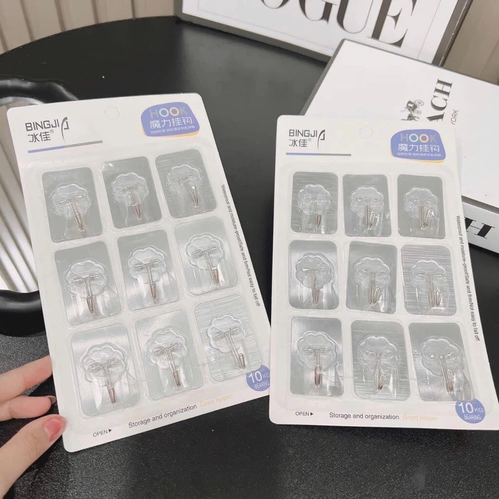 ✨Vỉ 9 móc dán tường chịu lực siêu chắc, móc dán tường đa năng chịu nặng tốt
