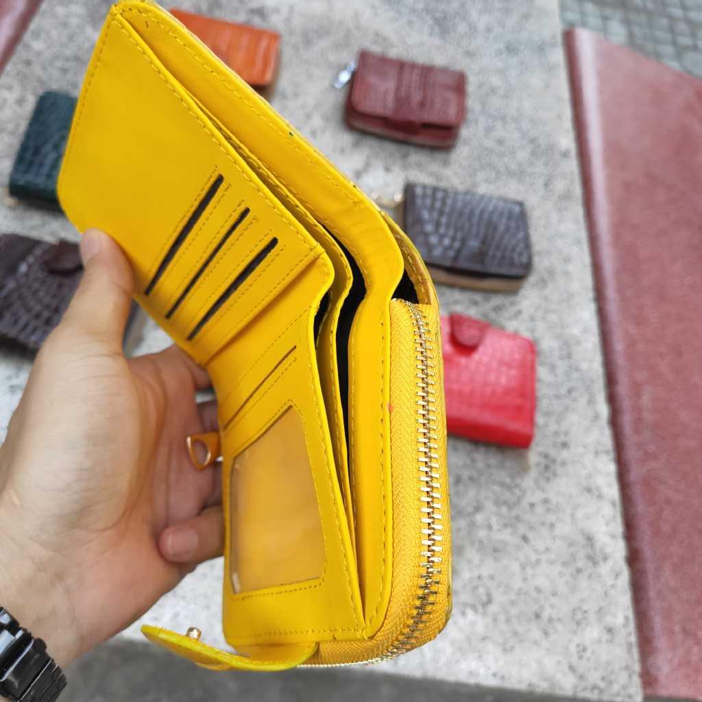 Ví nữ cầm tay nhỏ gọn. Phiên bản đặc biệt đựng siêu nhiều đồ. Da cá sấu vàng nổi bật VN11V