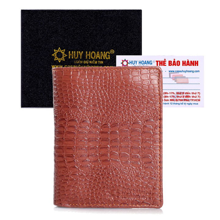 Ví/Bóp nam Huy Hoàng da bò vân cá sấu kiểu đứng màu nâu 2121