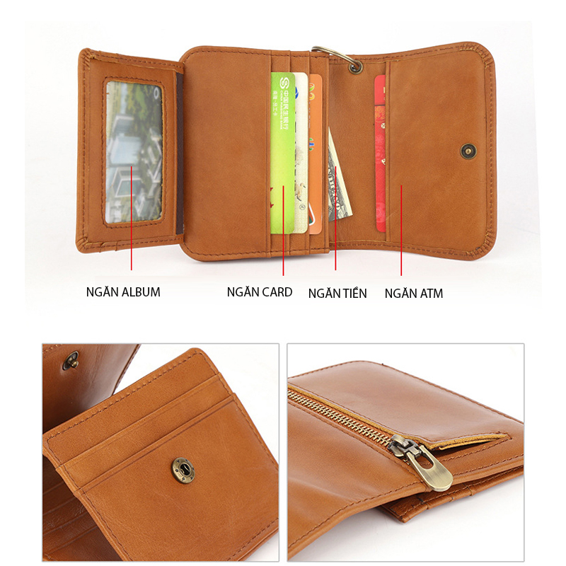 Kích thước : rộng 11.5cm X cao 10cm X dày 1.7cm Trọng lượng: 0.1kg Màu sắc: Cam, Nâu. Đỏ, Đen, Xanh Lá Phương pháp sản xuất: Thủ công Chất liệu : DA BÒ THẬT Chức