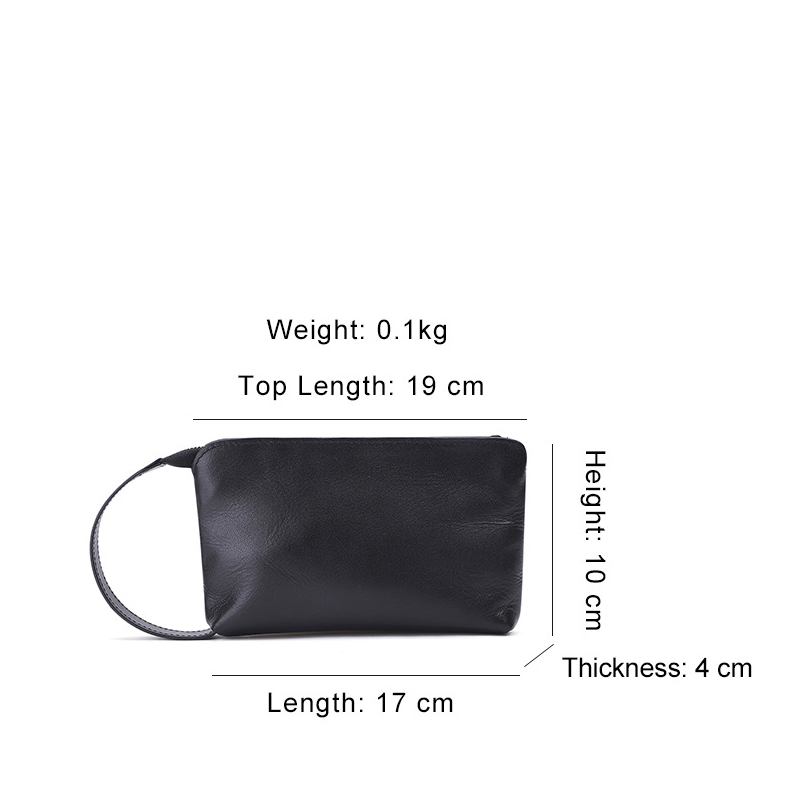 Kích thước : rộng 21cm X cao 12cm X dày 2.5cm Trọng lượng: 0.2kg Màu sắc: Đen, Nâu Phương pháp sản xuất: Thủ công Chất liệu : Da Chức năng: thoáng khí, chống mài mòn, dễ làm sáng, chống sốc thiết kế : sang trọng, tiện dụng, đẳng cấp khác biệt