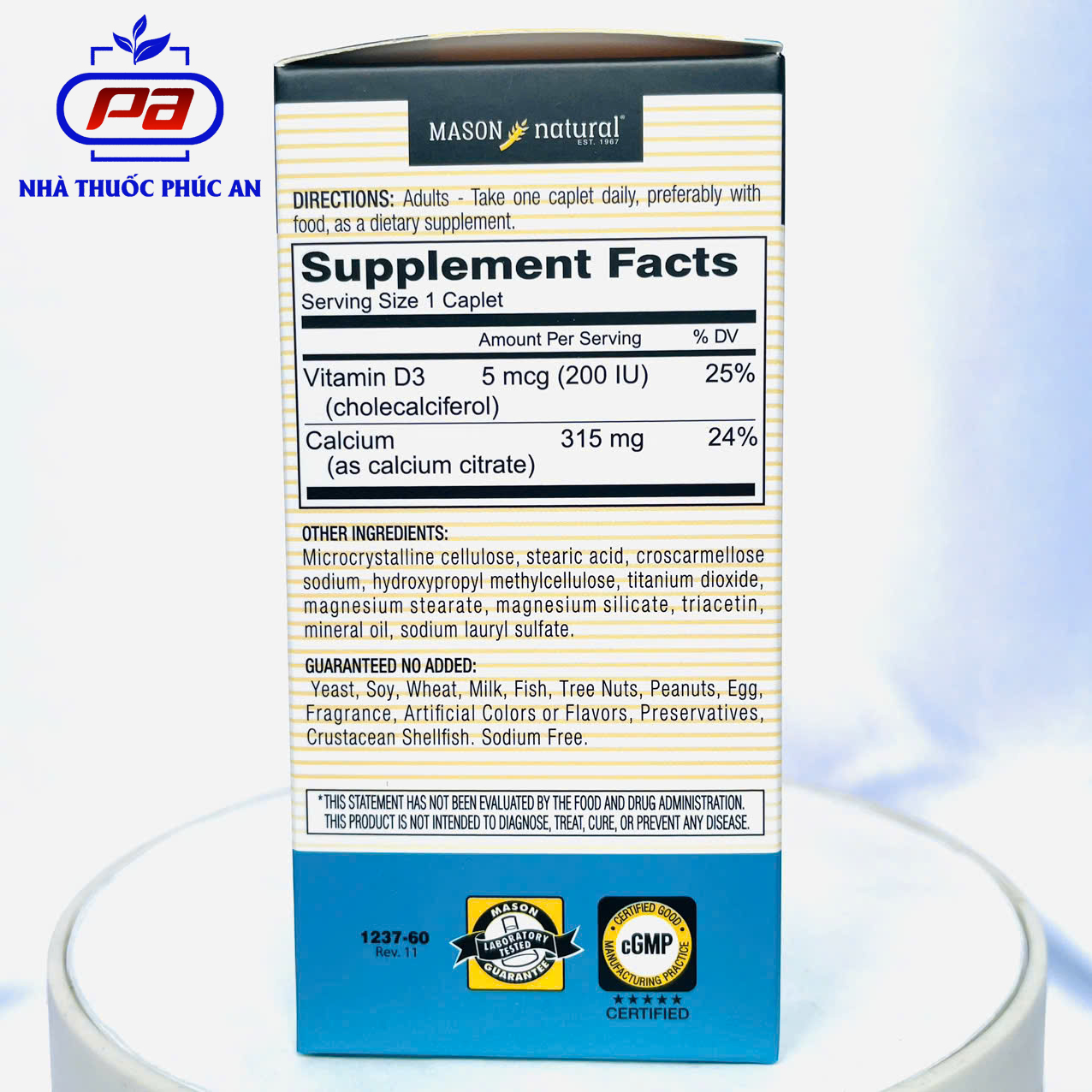 Mua tại TiktokViên uống bổ sung Canxi hữu cơ + Vitamin D3 cho bà bầu Mason Natural Calcium Citrate + D3 Mỹ 60 viên THÔNG TIN SẢN PHẨM: