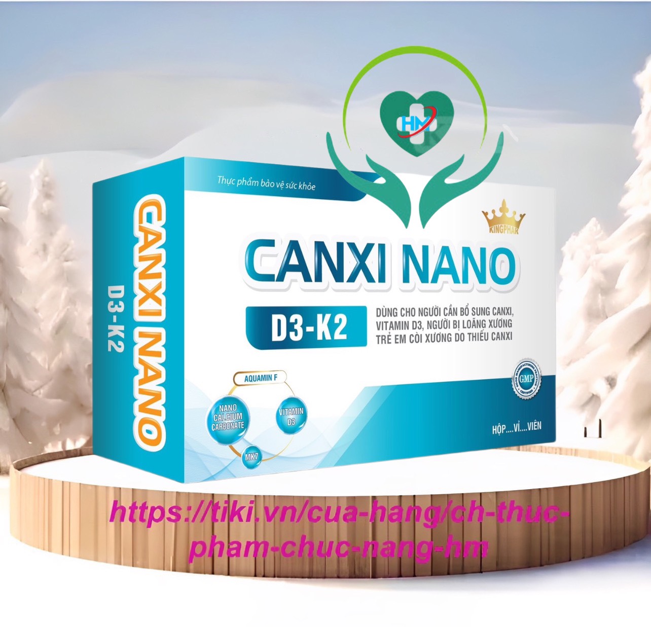 Mua tại TiktokThành phần: Aquamin F ( tảo biển đỏ) 400mg Nano calcium Carbonate 320mg Vitamin D3 400IU MK7 25mcg Công dụng: Bổ sung canxi, vitamin D3 cho cơ thể, giúp xương răng chắc khỏe, hạn chế nguy cơ còi xương ở trẻ em, và loãng xương ở người trưởng thành Đối tượng sử dụng: Trẻ từ 7 tuổi trở lên, người lớn Cảnh báo : không dùng cho người bị sỏi thận, sỏi tiết niệu Cách dùng: Trẻ từ 7-10 tuổi: 1 viên/ ngày Từ 10 tuổi trở lên: 2 viên/ ngày, ( mỗi lần 1 viên) Bảo quản: nơi khô mát, tránh ánh sáng trực tiếp Thương nhân chịu trách nhiệm: Công ty CP Kingphar Việt Nam