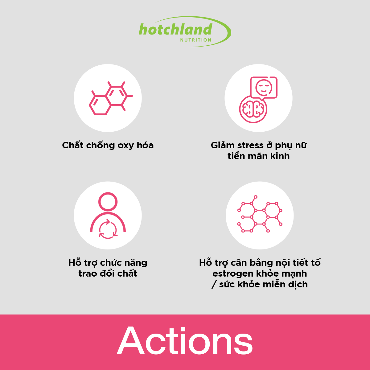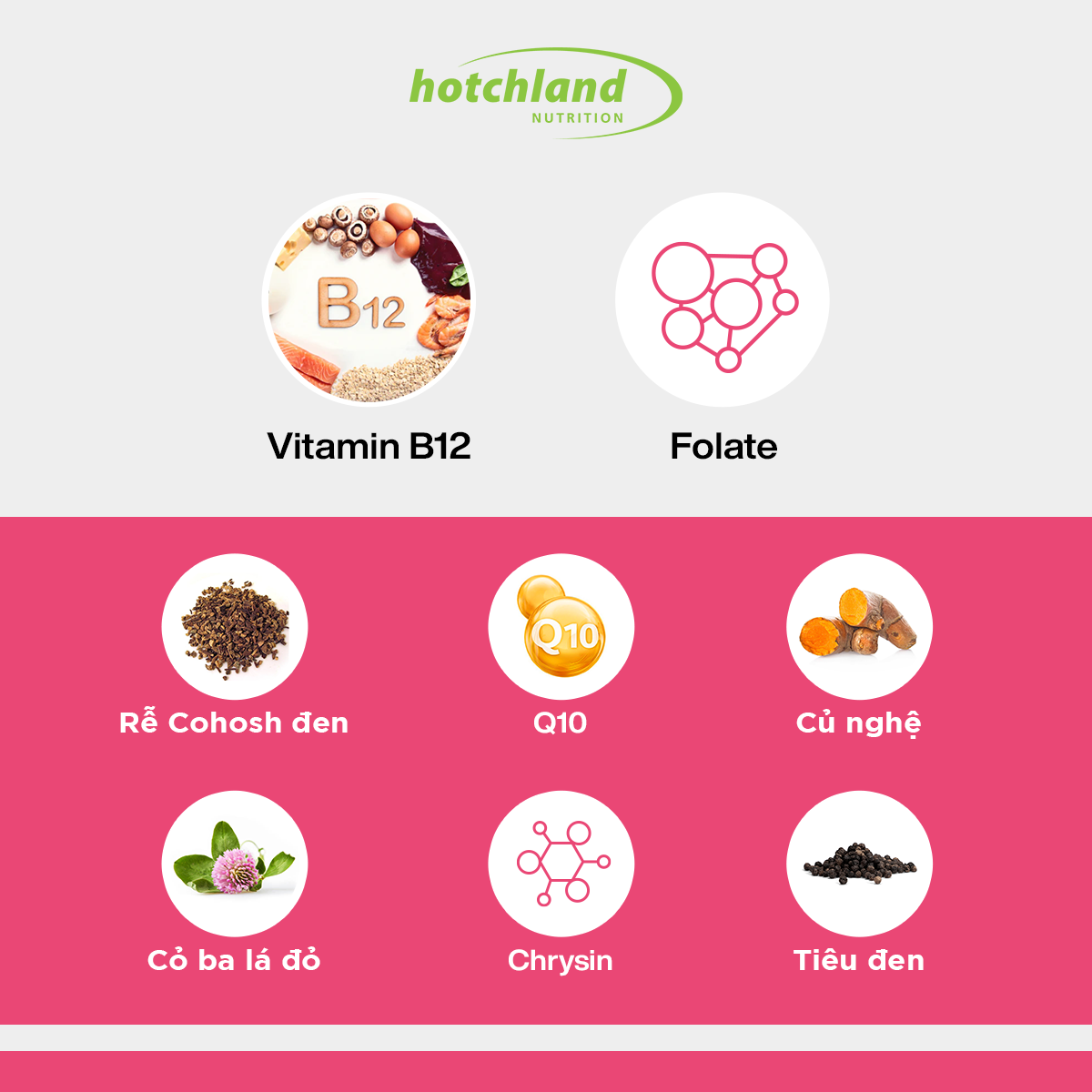 - Bổ sung nội tiết tố từ Isoflavone, chiết xuất ba lá đỏ, không có mầm đậu nành nên an toàn cho người u xơ, u nang hay người bị dị ứng với đậu nành, chiết xuất đậu nành.