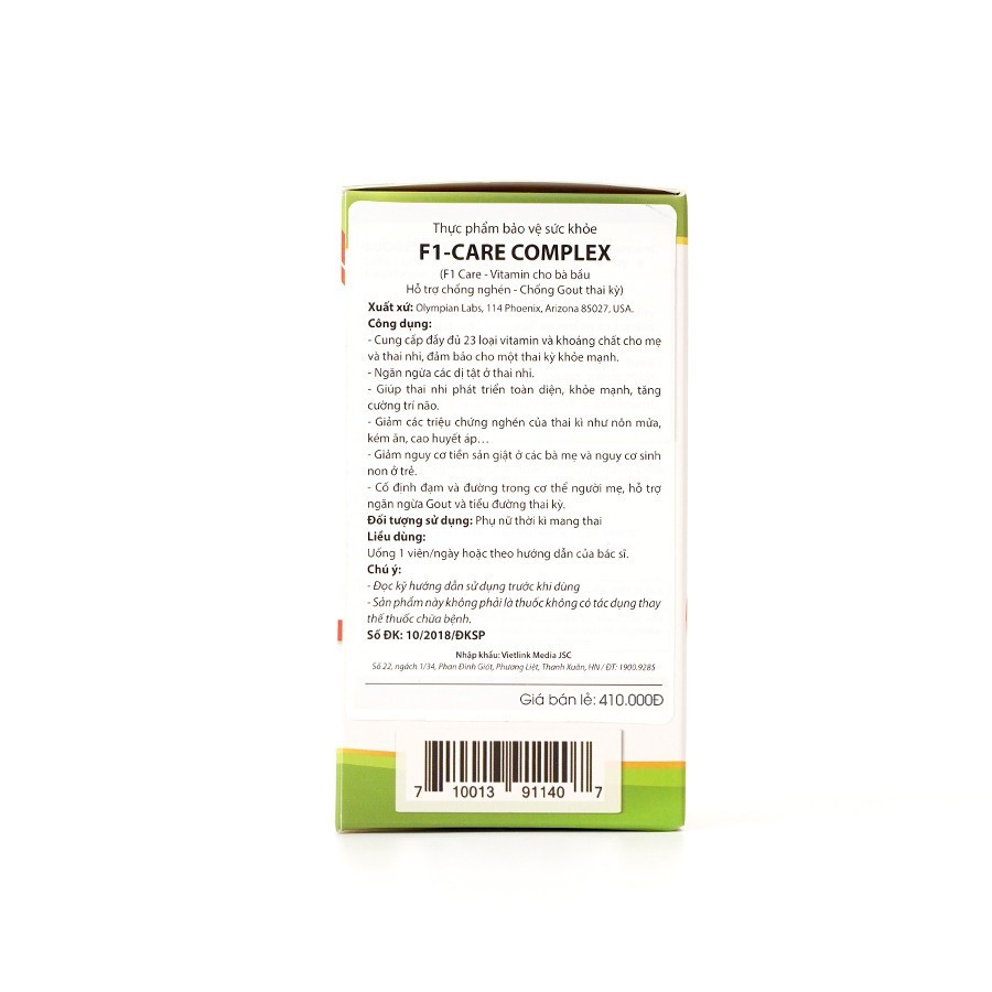 - Cố định đạm và đường trong cơ thể người mẹ, hỗ trợ ngăn ngừa gout và tiểu đường thai kỳ. HƯỚNG DẪN SỬ DỤNG Chỉ cần 1 viên F1-Care Complex vào mỗi sáng (trước, trong hoặc sau khi ăn), mẹ và bé đã bổ sung đầy đủ nhu cầu vitamin, khoáng chất cần thiết để đảm bảo 1 thai kỳ khỏe mạnh ĐỐI TƯỢNG SỬ DỤNG