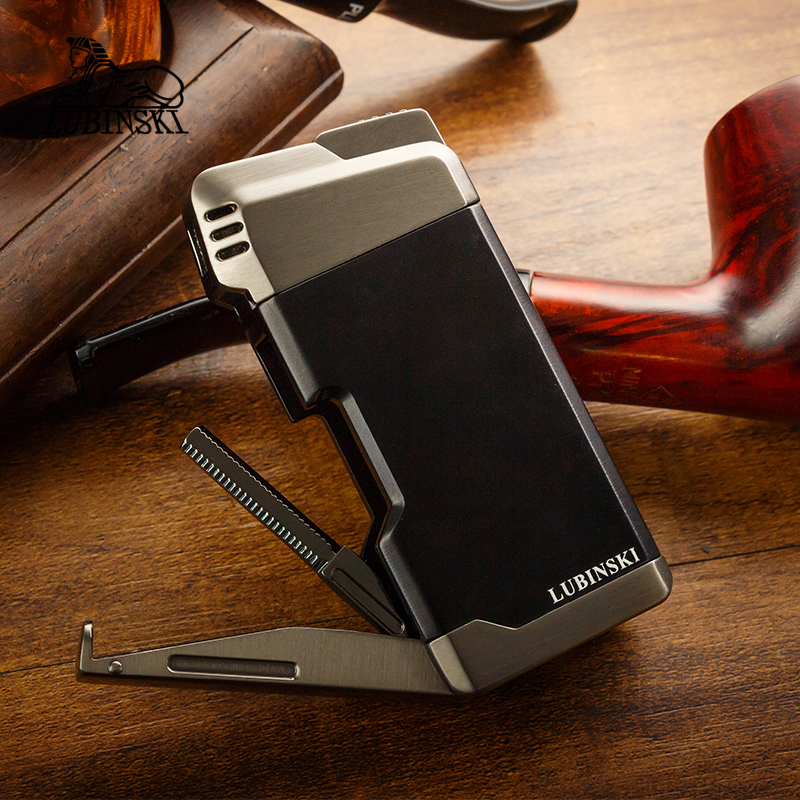 Hộp Quẹt Bật Lửa Khò Ga 3 Tia, Kèm Đục Xì Gà Lubinski SK-43, Thiết Kế Nhỏ Gọn Sang Trọng
