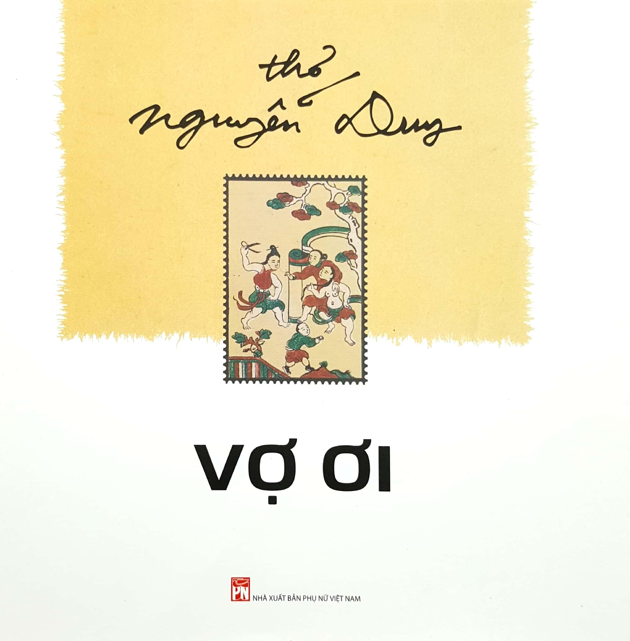 Nhà thơ Nguyễn Duy không chỉ nổi tiếng với những câu lục bát mềm mại về làng quê thân thuộc hay những bài thơ thế sự đầy những trăn trở về thời cuộc đất nước mà ông còn được đông đảo độc giả yêu mến, xúc động bởi những bài thơ ông viết về phụ nữ - bà, mẹ, và đặc biệt là về vợ. Có lẽ hiếm có nhà thơ Việt Nam nào bày tỏ sự ghi nhận, tri ân người vợ của mình từ rất sớm, và nhiều lần như ông. Và có lẽ trong giới văn chương Việt từ xưa đến nay cũng mới chỉ duy nhất có ông in hẳn một tập thơ dành tặng vợ, đó là tập Vợ ơi. Vợ ơi là một tập thơ nhỏ xinh gồm 20 bài thơ Nguyễn Duy viết cho vợ - bà Bùi Thị Hào – “từ hồi trót nói lời thương” năm 1971 cho đến hơn hai thập kỷ sau đó, với đủ mọi cung bậc cảm xúc của một hành trình dài yêu thương và gắn bó, là những lời . Đó là nỗi nhớ nhung người yêu của một chàng trai đang ở chiến hào: “nhớ em khi dựa vách hầm nghe em là tiếng thì thầm đất rung…” (Nhớ, 1970)… Đó là cảm giác day dứt của một ông chồng tự nhận mình “làm nghề mộng du” quen mây gió trăng sao một ngày bỗng giật mình khi tự nhìn lại: “Ta rất gần biển rộng với trời cao để xa cách những gì thân thuộc nhất nồi gạo hết lúc nào ta chả biết thăm thẳm nỗi lo mắt vợ u sầu…” (Bán vàng, 1980); Đó là tâm tư của một kẻ ưa lang bạt kỳ hồ chợt “ngộ” ra: “thôi ta về với mình thôi chân trời đành để chim trời nó bay trông người xưa ngẫm người nay đường xa nghĩ nỗi sau này …cũng kinh” (Đường xa, 1988); Đó là niềm mong mỏi về chặng cuối êm đằm sau cả hành trình dài “khấp khểnh”: “trời cho sống ta cũng già em ạ con thương cha không bằng bà thương ông tình như rượu chôn sâu đằm lịm lại cuối đời đem ra nhấm với mềm lòng” (Yêu, 1989) Đó là lời tạ tội của một ông chồng nghệ sĩ ham vui, ham chơi: “thất tha thất thểu văn chương kẽo cà kẽo kẹt tai ương đường dài yêu cùng ai ghét giùm ai để cơm áo vẹo hai vai em gầy … Xin đừng buồn nữa em ơi…” (Xin đừng buồn em nhé, 1989) Đó là nỗi hốt hoảng, thảng thốt của một người chồng “thông thường hạ giới rong chơi/trần gian choang choác sự đời tùy em” khi vợ ốm: “nghìn tay nghìn việc không tên mình em làm cõi bình yên nhẹ nhàng thình lình em ngã bệnh ngang phang anh xất bất xang bang sao đành” (Vợ ốm, 1994)