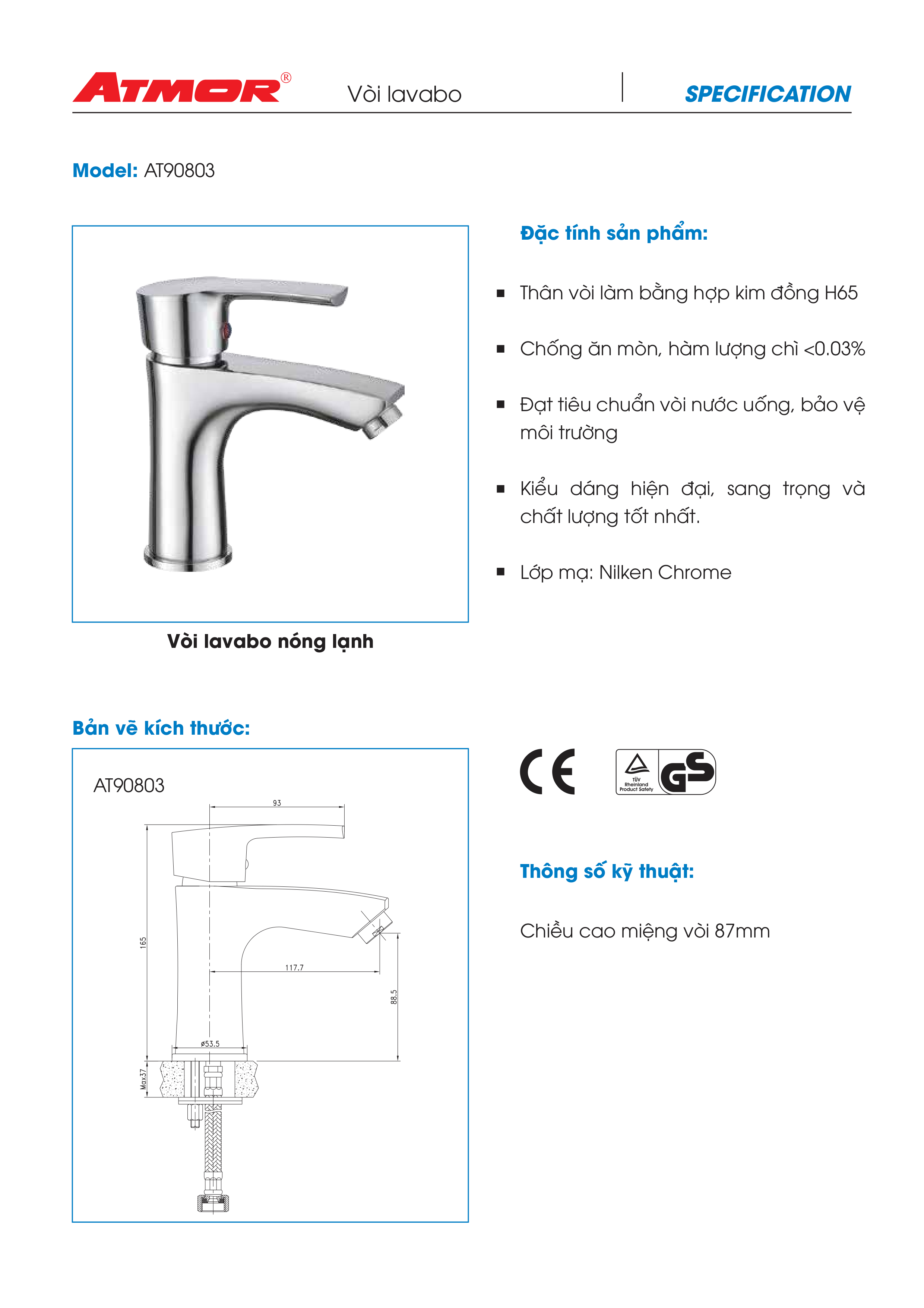 Thông tin sản phẩm Thông tin về vòi rửa tay nóng lạnh Atmor: