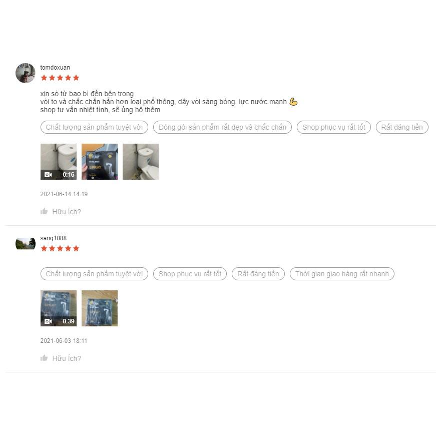 - Đầu vòi xịt vệ sinh inox 304 được thiết kế chắc khỏe, đặc biệt vừa vặn với tay cầm.  - Chống chịu được va đập mạnh, không bị móp méo. Cần bấm chống trơn
