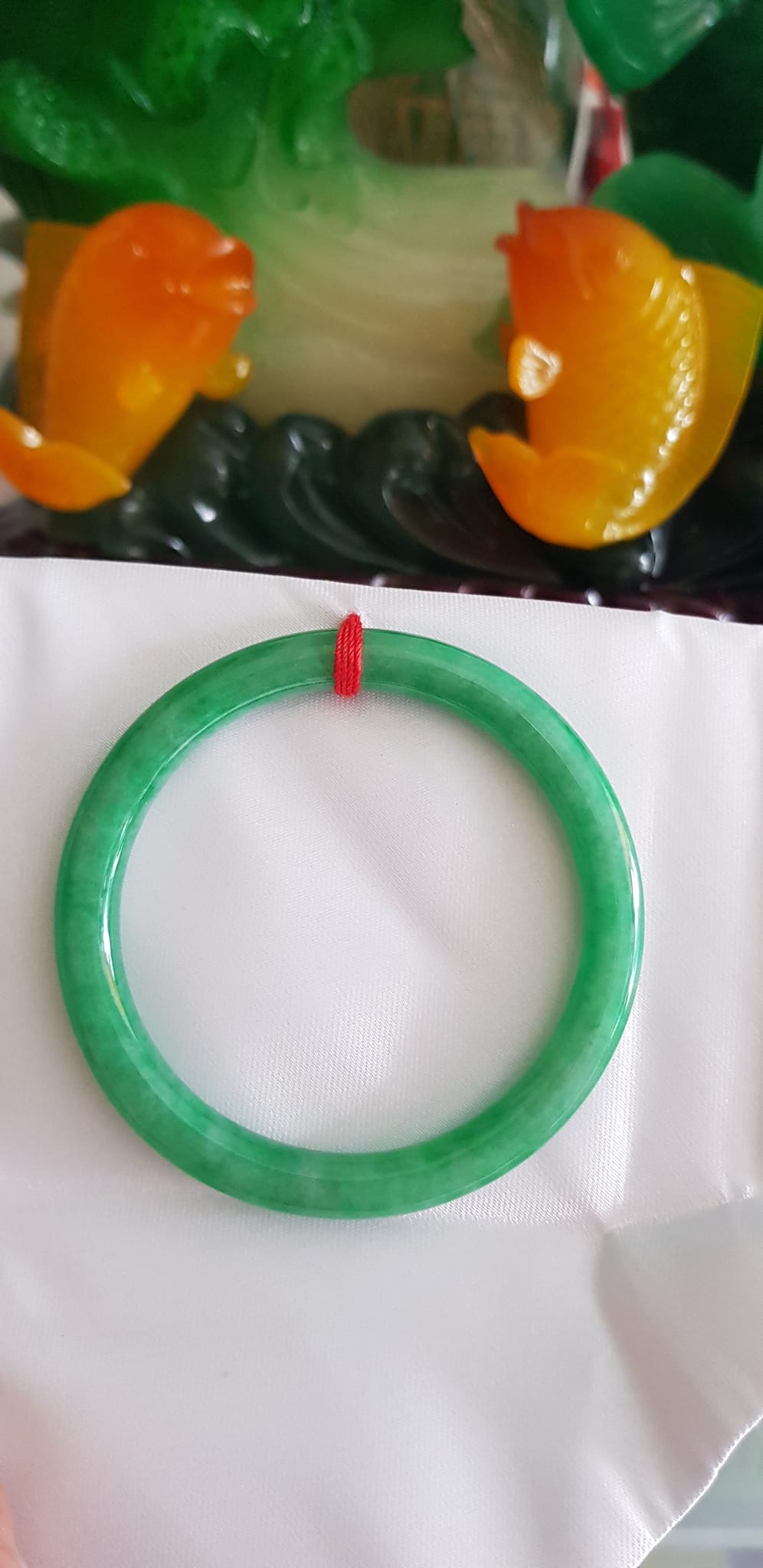 Vòng CẨM THẠCH DLý 49 Ni 49mm x cọng 7mm Màu Xanh Lá Đậm Hợp Nữ mệnh Mộc Hỏa Cân nặng 45kg -> 51kg đeo xinh tay ạ Sản phẩm này là tài sản