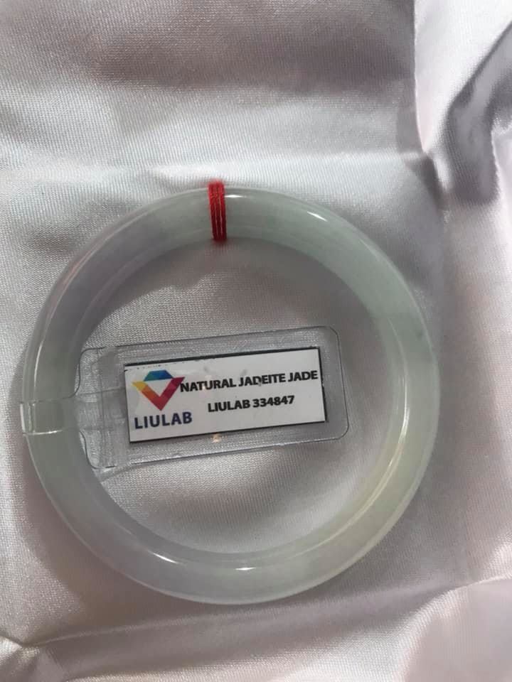 ✨VÒNG CẨM THẠCH TỰ NHIÊN TRẮNG TÍM SỊN 50mm x Dầy 8mm KÈM GIẤY KIỂM ĐỊNH LIULAB 334847 MÀU TRẮNG LAM TÍM NHẸ 1 BÊN ĐIỂM XANH NHẸ ĐẸP LẮM NỮ 50Kg - 55kg ĐEO ĐẸP Ạ
