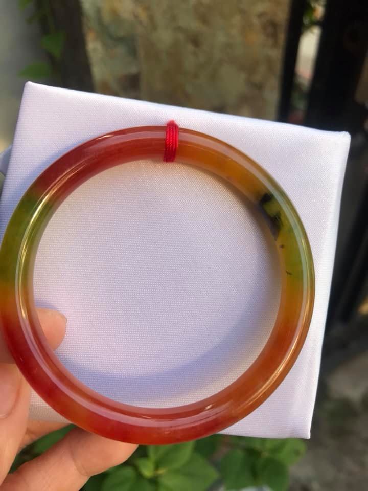 VÒNG CẨM THẠCH TỨ QUÝ ĐỎ XANH LÁ size 53mm x dầy 6,8mm / VÒNG TAY ĐÁ PHONG THUỶ SUNNY QUẬN 8