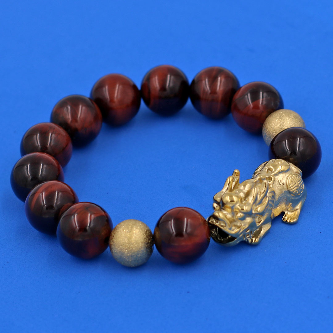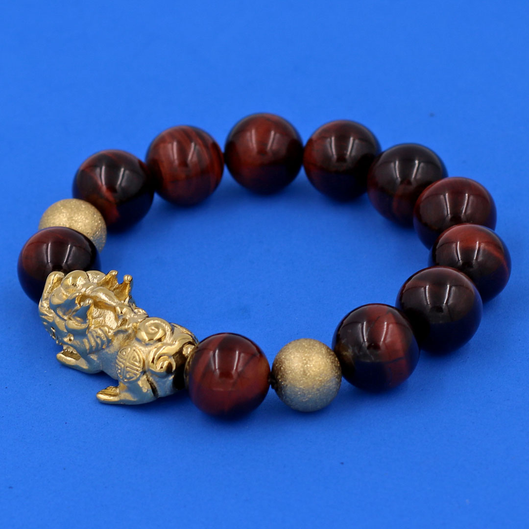 Thông tin sản phẩm : Vòng chuỗi đeo tay đá mắt hổ đen đỏ 14 ly ( size lớn ) charm tỳ hưu và bi inox vàng, vòng tay chuỗi hạt
